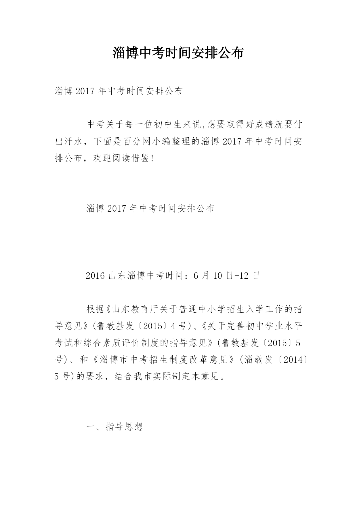 淄博中考时间安排公布淄博2017年中考时间安排公布中考关于每一位初中生来说,想要取得好成绩就要付出汗水,下面是百分网小编整理的淄博2017年中考时间安排公布,欢迎阅读借鉴!淄博2017年中考时间安排公布2016山东淄博中考时间:6月10日-12日根据《山东教育厅关于普通中小学招生入学工作的指导意见》(鲁教基发〔2015〕4号)、《关于完善初中学业水平考试和综合素质评价制度的指导意见》(鲁教基发〔2015〕5号)、和《淄博市中考招生制度改革意见》(淄教发〔2014〕5号)的要求,结合我市实际制定本意见。一、