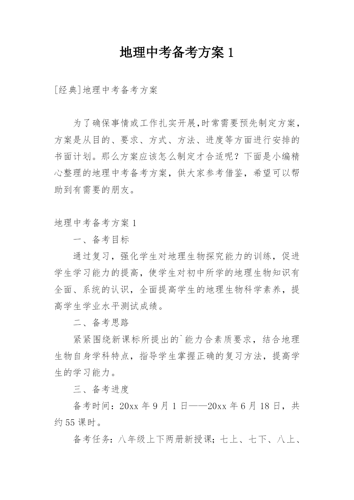 地理中考备考方案1[经典]地理中考备考方案为了确保事情或工作扎实开展,时常需要预先制定方案,方案是从目的、要求、方式、方法、进度等方面进行安排的书面计划。那么方案应该怎么制定才合适呢?下面是小编精心整理的地理中考备考方案,供大家参考借鉴,希望可以帮助到有需要的朋友。地理中考备考方案1一、备考目标通过复习,强化学生对地理生物探究能力的训练,促进学生学习能力的提高,使学生对初中所学的地理生物知识有全面、系统的认识,全面提高学生的地理生物科学素养,提高学生学业水平测试成绩。二、备考思路紧紧围绕新课标所提出的`能