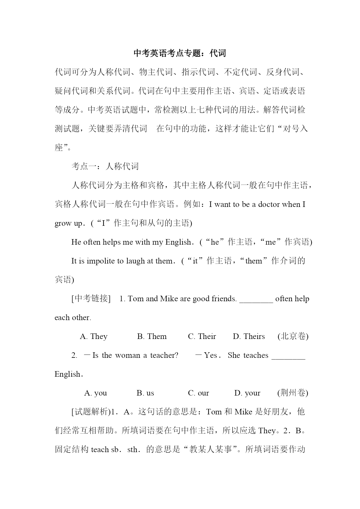 中考英语考点专题代词.doc