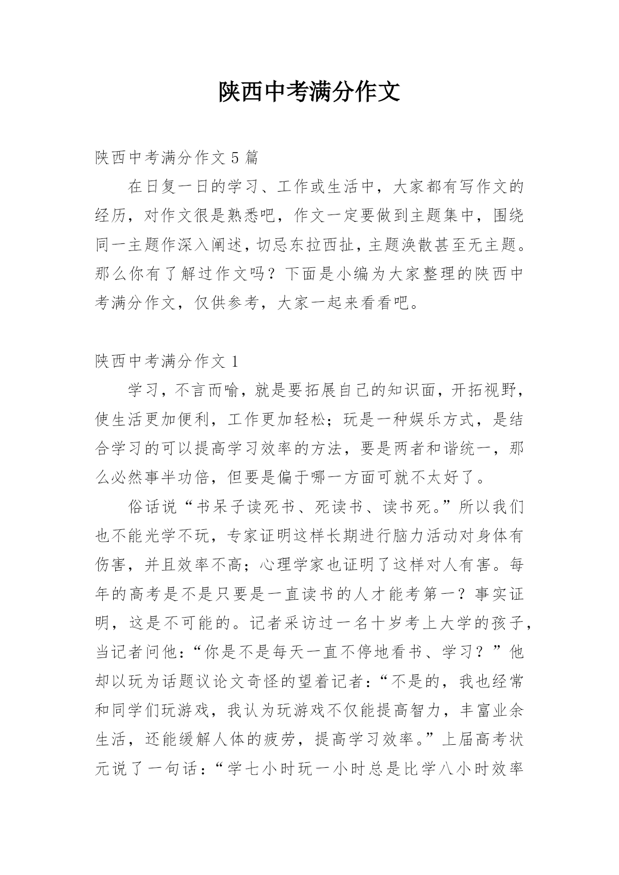 陕西中考满分作文陕西中考满分作文5篇在日复一日的学习、工作或生活中,大家都有写作文的经历,对作文很是熟悉吧,作文一定要做到主题集中,围绕同一主题作深入阐述,切忌东拉西扯,主题涣散甚至无主题。那么你有了解过作文吗?下面是小编为大家整理的陕西中考满分作文,仅供参考,大家一起来看看吧。陕西中考满分作文1学习,不言而喻,就是要拓展自己的知识面,开拓视野,使生活更加便利,工作更加轻松;玩是一种娱乐方式,是结合学习的可以提高学习效率的方法,要是两者和谐统一,那么必然事半功倍,但要是偏于哪一方面可就不太好了。俗话说“书