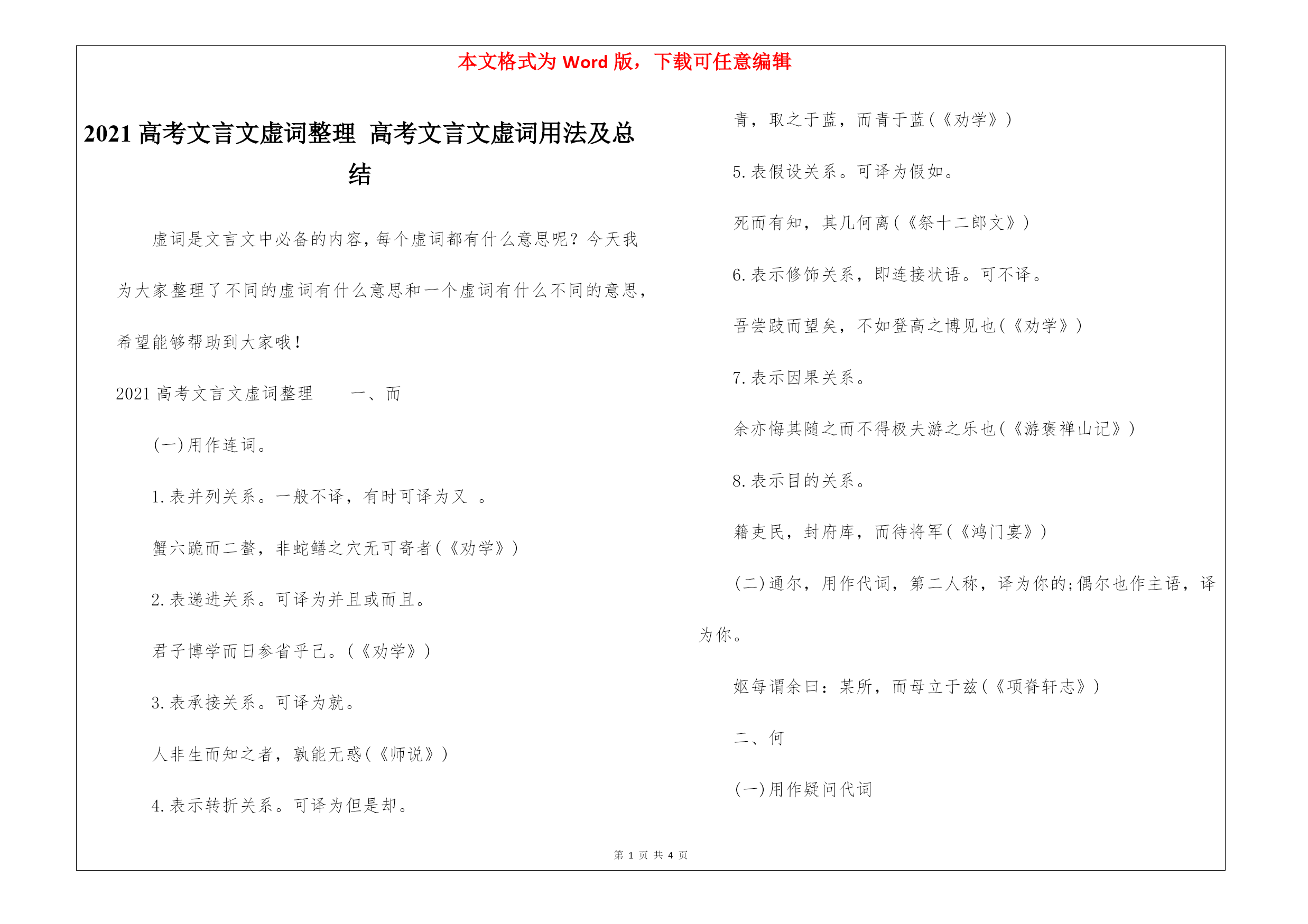 2021高考文言文虚词整理-高考文言文虚词用法及总结-.docx