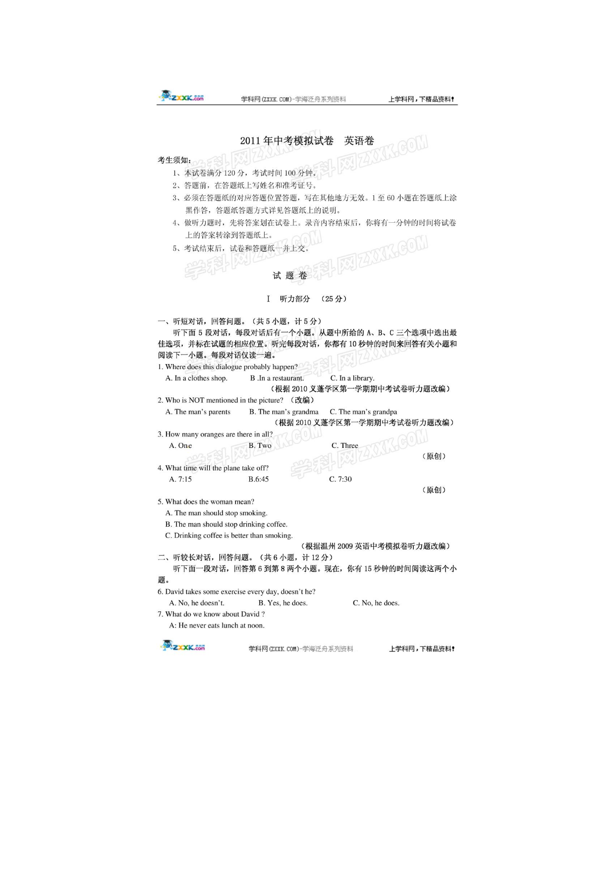 【小试兔刀赢战中考】2011年中考模拟试卷3.doc
