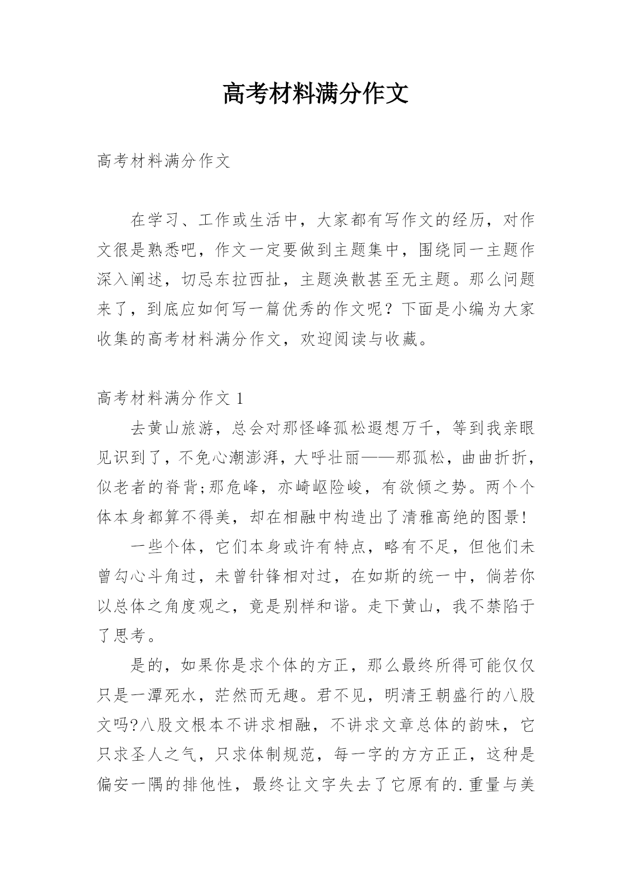 高考材料满分作文高考材料满分作文在学习、工作或生活中,大家都有写作文的经历,对作文很是熟悉吧,作文一定要做到主题集中,围绕同一主题作深入阐述,切忌东拉西扯,主题涣散甚至无主题。那么问题来了,到底应如何写一篇优秀的作文呢?下面是小编为大家收集的高考材料满分作文,欢迎阅读与收藏。高考材料满分作文1去黄山旅游,总会对那怪峰孤松遐想万千,等到我亲眼见识到了,不免心潮澎湃,大呼壮丽——那孤松,曲曲折折,似老者的脊背;那危峰,亦崎岖险峻,有欲倾之势。两个个体本身都算不得美,却在相融中构造出了清雅高绝的图景!一些个体,