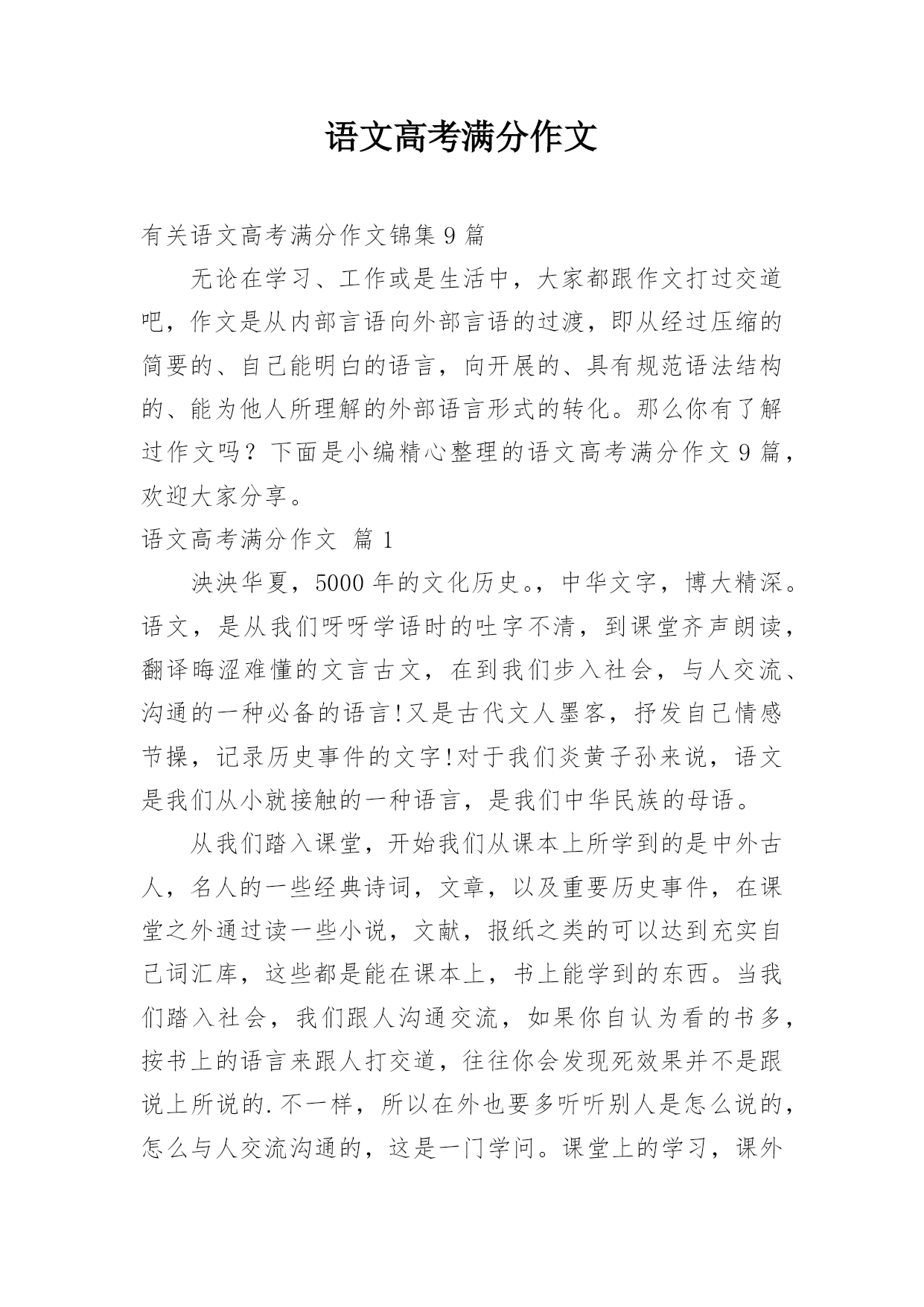 语文高考满分作文有关语文高考满分作文锦集9篇无论在学习、工作或是生活中,大家都跟作文打过交道吧,作文是从内部言语向外部言语的过渡,即从经过压缩的简要的、自己能明白的语言,向开展的、具有规范语法结构的、能为他人所理解的外部语言形式的转化。那么你有了解过作文吗?下面是小编精心整理的语文高考满分作文9篇,欢迎大家分享。语文高考满分作文篇1泱泱华夏,5000年的文化历史。,中华文字,博大精深。语文,是从我们呀呀学语时的吐字不清,到课堂齐声朗读,翻译晦涩难懂的文言古文,在到我们步入社会,与人交流、沟通的一种必备的语