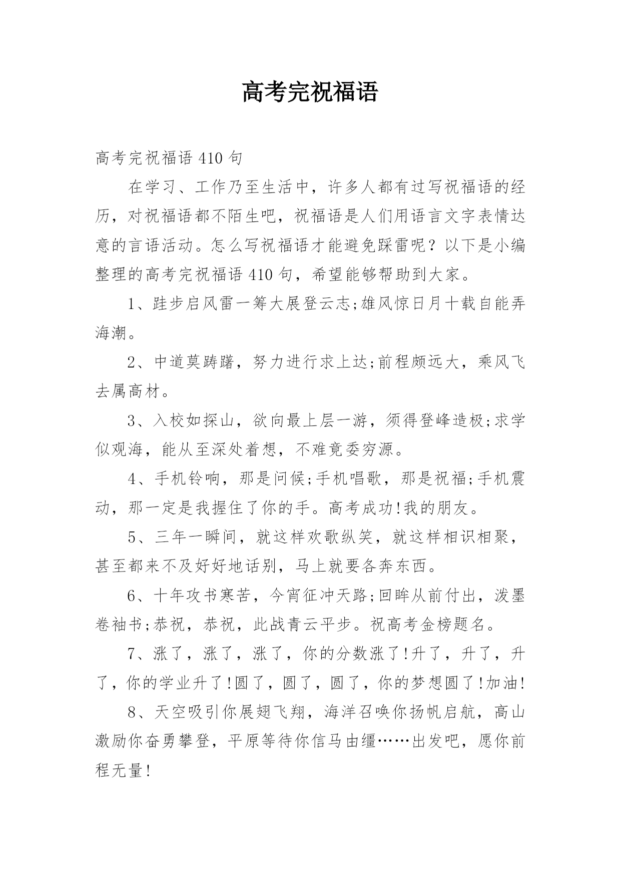 高考完祝福语高考完祝福语410句在学习、工作乃至生活中,许多人都有过写祝福语的经历,对祝福语都不陌生吧,祝福语是人们用语言文字表情达意的言语活动。怎么写祝福语才能避免踩雷呢?以下是小编整理的高考完祝福语410句,希望能够帮助到大家。1、跬步启风雷一筹大展登云志;雄风惊日月十载自能弄海潮。2、中道莫踌躇,努力进行求上达;前程颇远大,乘风飞去属高材。3、入校如探山,欲向最上层一游,须得登峰造极;求学似观海,能从至深处着想,不难竟委穷源。4、手机铃响,那是问候;手机唱歌,那是祝福;手机震动,那一定是我握住了你的