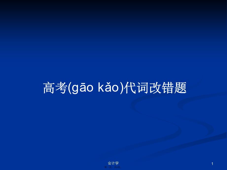 会计学高考英语短文改错考点(kǎodiǎn)解析:代词2.人称代词(dàicí)的主格与宾语变化4.某些不定代词的用法(yònɡfǎ)(尤其是在意思上用错)二.模拟(mónǐ)单句演练谢谢您的观看(guānkàn)!