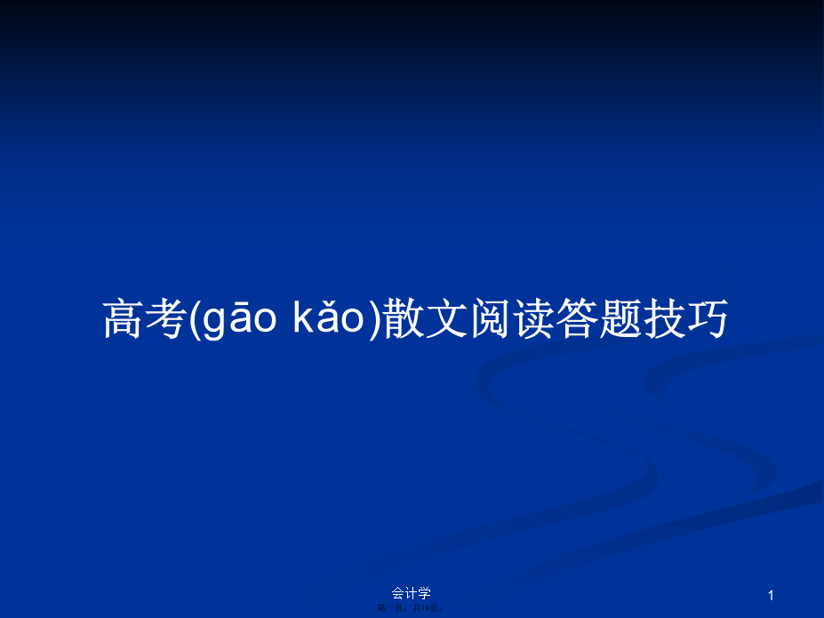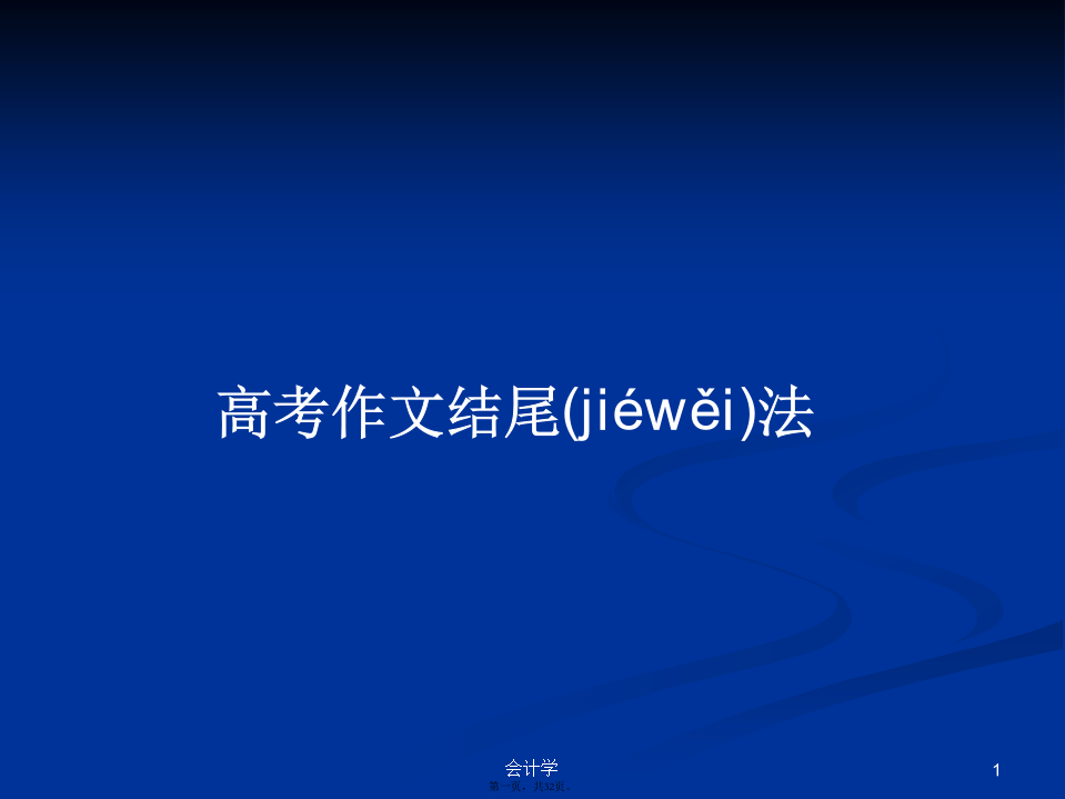 会计学“结句当如撞钟,清音有余(yǒuyú)。”——明谢榛“终篇之际,当以媚语摄魂,使人执卷流连,若难遽别。”——清李渔用凝练简洁或富有哲理(zhélǐ)的语句归纳总结,揭示中心,点明意义,卒章显志,可以起到归纳总结、画龙点睛的作用。这种方式的结尾由于以全文内容为依托,其实是中心的“再现”,能更好地彰显主题。2005年北京高考佳作《说“安”》安家,安国,安邦之人,必先安心。将心安如磐石的人是“志者”,将心置若冰清的为“治者”,将心比作镜湖的必为“智者”,将心看似苍穹的实作“知者”。安心、安家、安邦,之后安