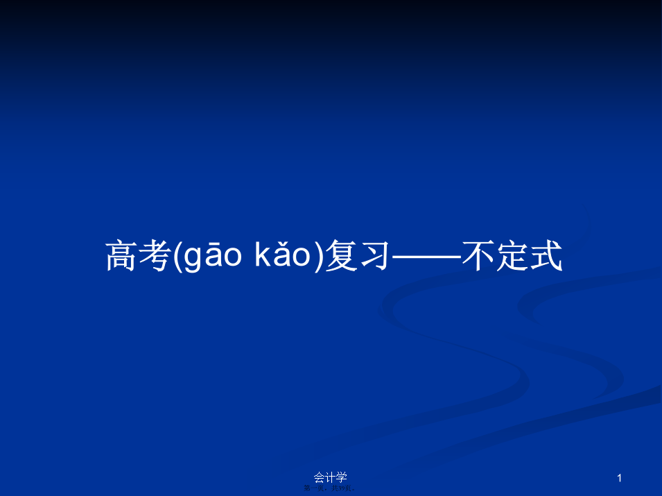 会计学知识(zhīshi)梳理知识(zhīshi)梳理不定式在句中的作用(zuòyòng)不定式在句中的作用(zuòyòng)不定式在句中的作用(zuòyòng)不定式在句中的作用(zuòyòng)不定式在句中的作用(zuòyòng)注意(zhùyì)不定式在句中的作用(zuòyòng)动词(dòngcí)不定式的时态㈡.进行(jìnxíng)式(tobedoing)动词(dòngcí)不定式的时态动词(dòngcí)不定式的语态动词(dòngcí)不定式的语态动词(dòngcí)不定式的语态动词(dòn