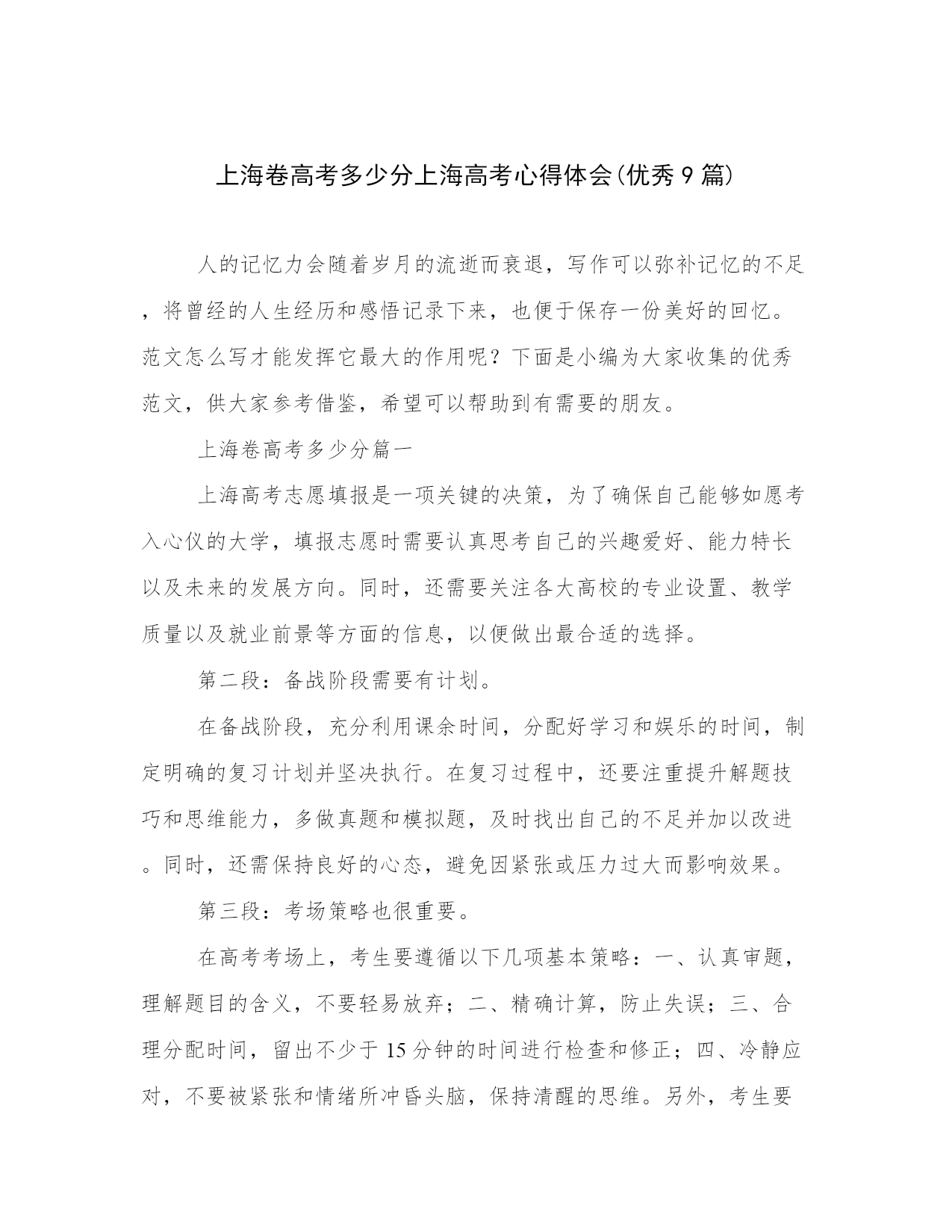 上海卷高考多少分上海高考心得体会(优秀9篇).docx
