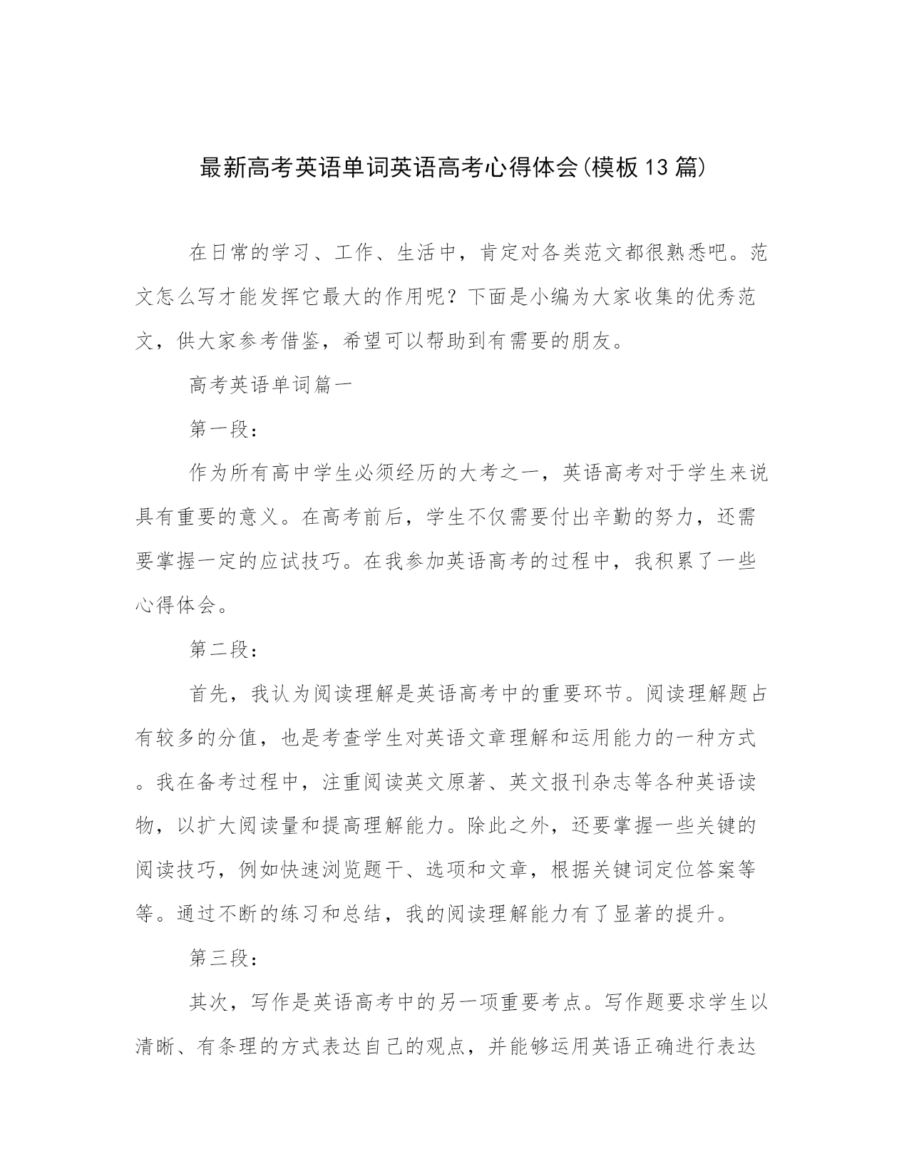 最新高考英语单词英语高考心得体会(模板13篇).docx