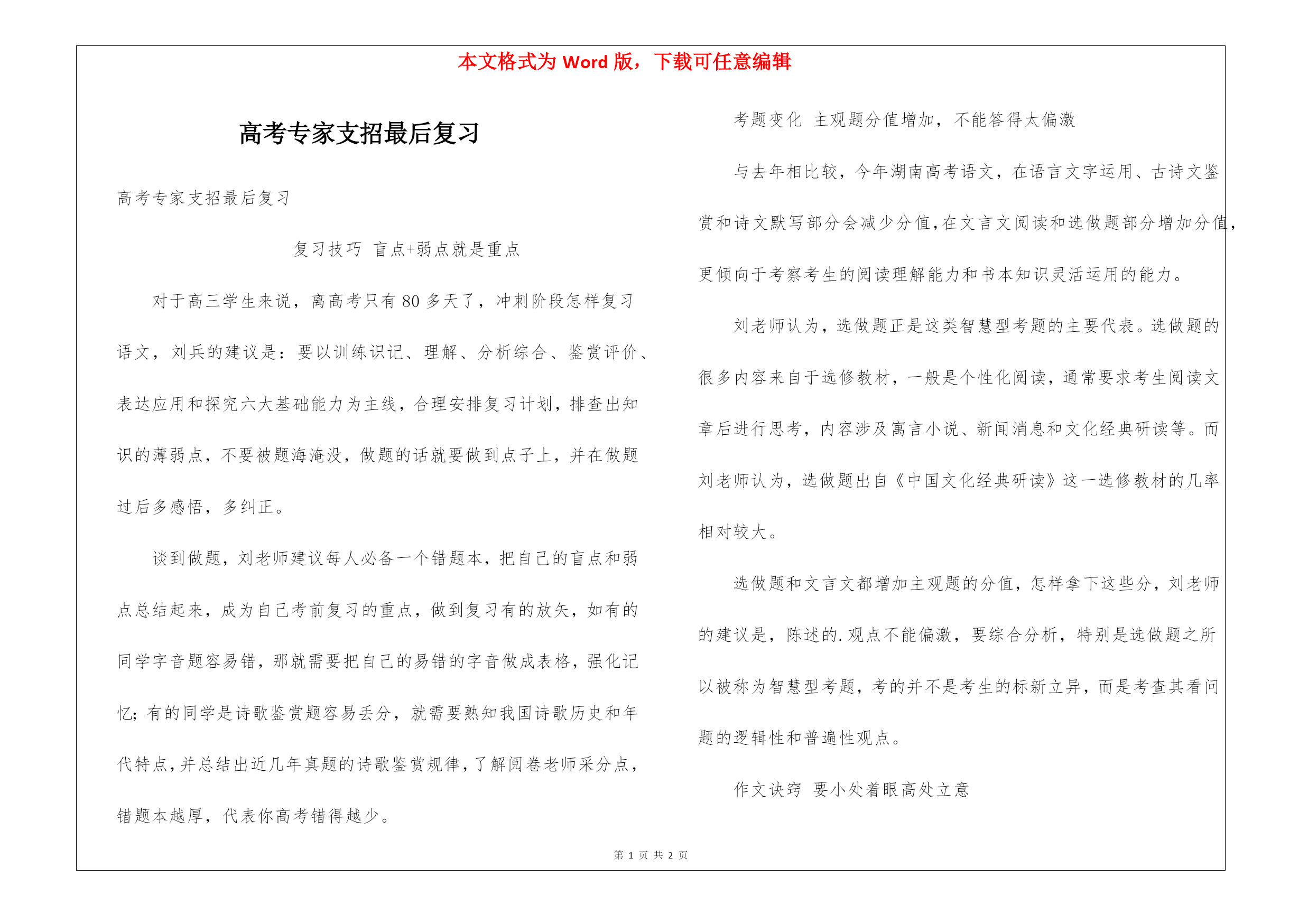 高考专家支招最后复习.docx