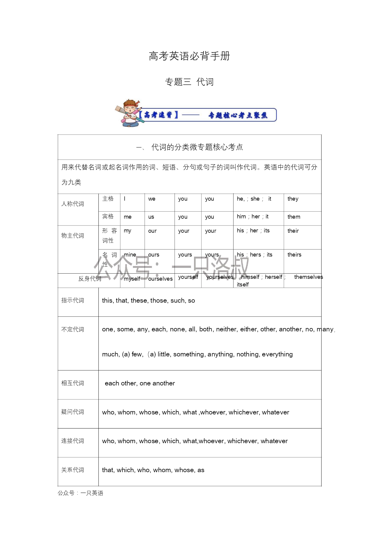 专题 03 高考英语语法【代词】核心考点聚焦 -高考英语必背手册.doc