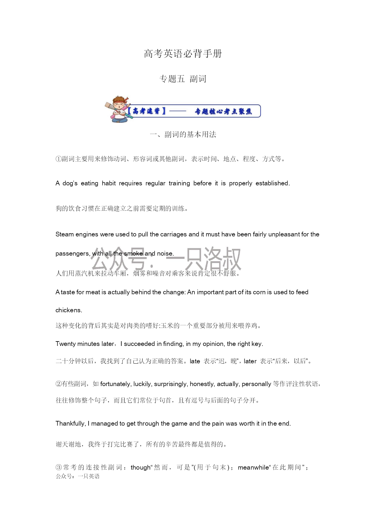 专题 05 高考英语语法【副词】核心考点聚焦 -高考英语必背手册.doc