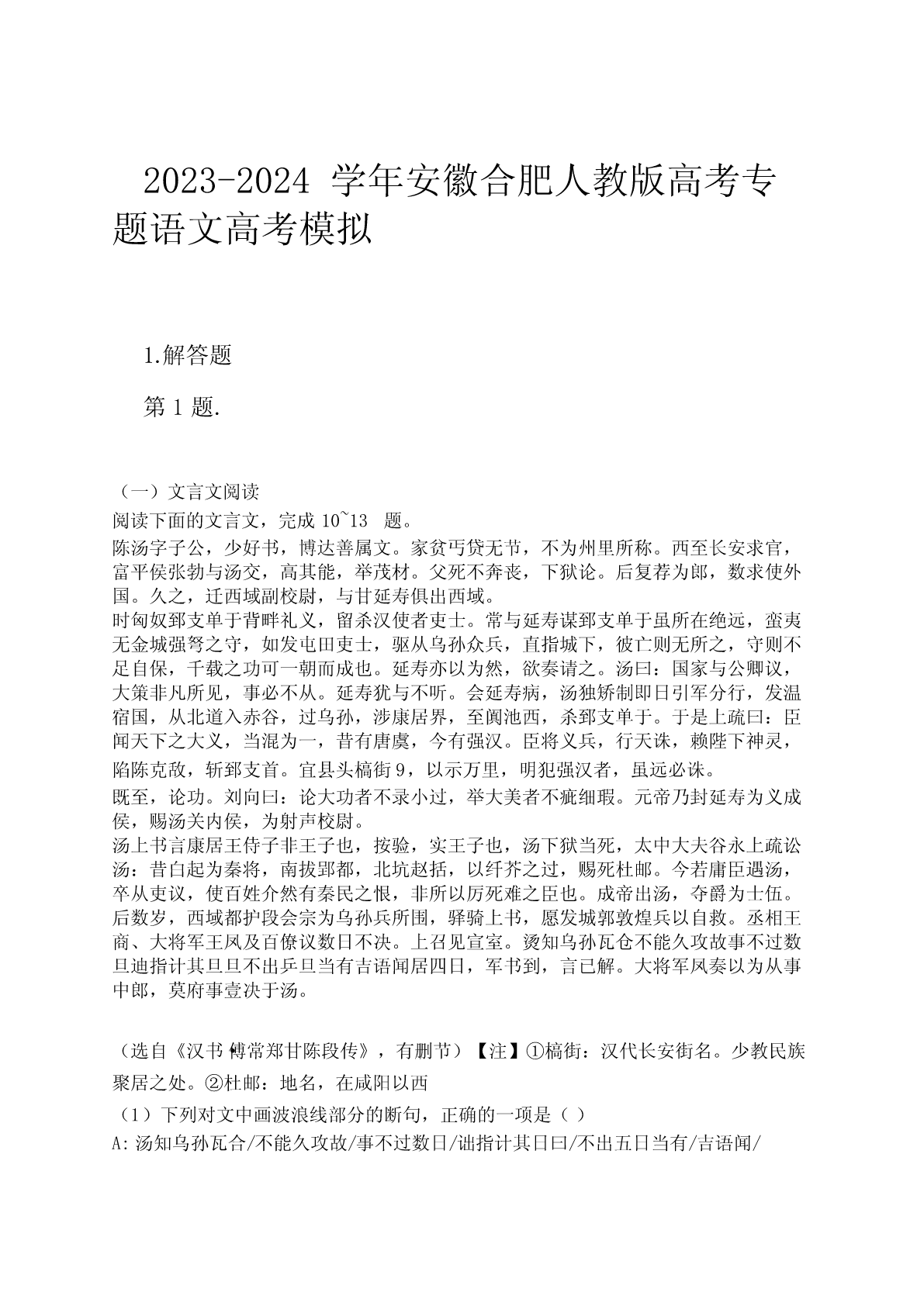 2023-2024学年安徽合肥人教版高考专题语文高考模拟习题及解析.pdf