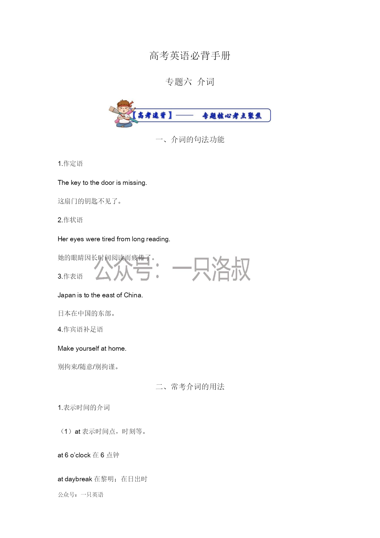 专题 06 高考英语语法【介词】核心考点聚焦 -高考英语必背手册.doc