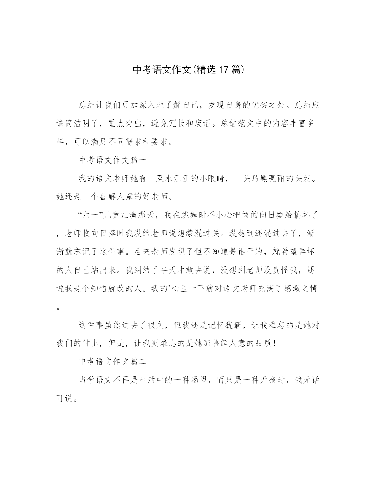 中考语文作文(精选17篇)总结让我们更加深入地了解自己,发现自身的优劣之处。总结应该简洁明了,重点突出,避免冗长和废话。总结范文中的内容丰富多样,可以满足不同需求和要求。中考语文作文篇一我的语文老师她有一双水汪汪的小眼睛,一头乌黑亮丽的头发。她还是一个善解人意的好老师。“六一”儿童汇演那天,我在跳舞时不小心把做的向日葵给搞坏了,老师收向日葵时我没给老师说想蒙混过关。没想到还混过去了,渐渐就忘记了这件事。后来老师发现了但不知道是谁干的,就希望弄坏的人自己站出来。我纠结了半天才敢去说,没想到老师没责怪我,还说