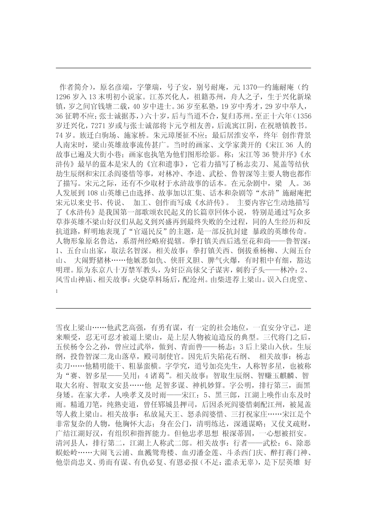 作者简介),原名彦端,字肇瑞,号子安,别号耐庵,元1370—约施耐庵(约1296岁入13末明初小说家。江苏兴化人,祖籍苏州,舟人之子,生于兴化新垛镇,岁之间官钱塘二载,40岁中进士。36岁至私塾,19岁中秀才,29岁中举人,36征聘不应;张士诚据苏,)六十岁,后与当道不合,复归苏州。至正十六年(1356岁迁兴化,7271岁或与张士诚部将卞元亨相友善,后流寓江阴,在祝塘镇教书。74岁。族迁白驹场、施家桥。朱元璋屡征不应;最后居淮安卒,终年创作背景人南宋时,梁山英雄故事流传甚广。当时的画家、文学家龚开的《宋江