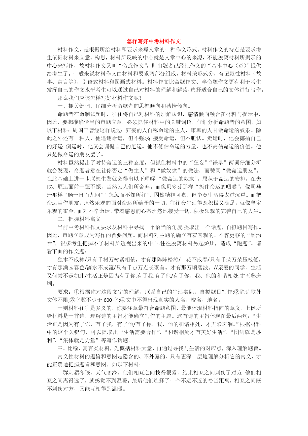 怎样写好中考材料作文.doc