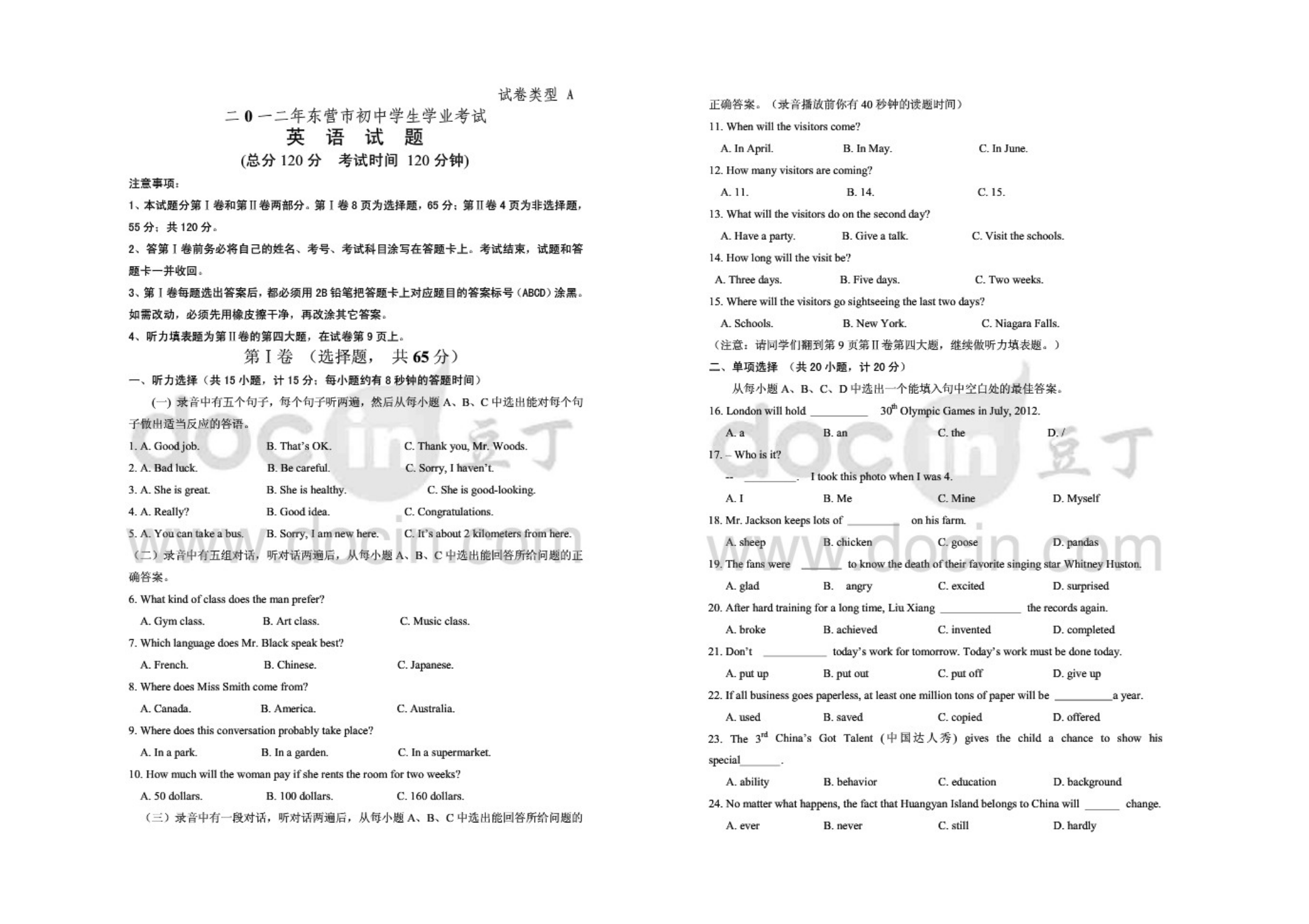 2012东营中考英语试题.doc