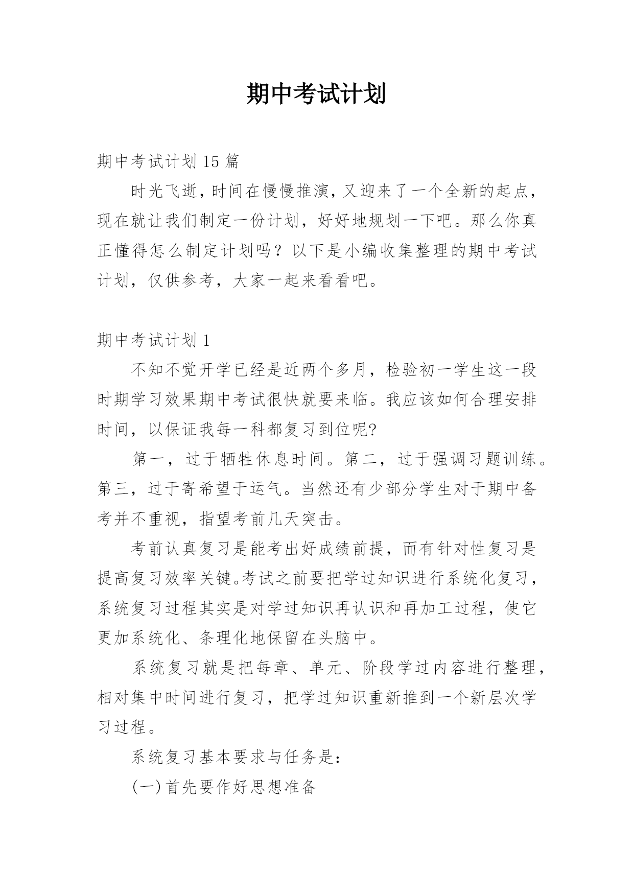 期中考试计划期中考试计划15篇时光飞逝,时间在慢慢推演,又迎来了一个全新的起点,现在就让我们制定一份计划,好好地规划一下吧。那么你真正懂得怎么制定计划吗?以下是小编收集整理的期中考试计划,仅供参考,大家一起来看看吧。期中考试计划1不知不觉开学已经是近两个多月,检验初一学生这一段时期学习效果期中考试很快就要来临。我应该如何合理安排时间,以保证我每一科都复习到位呢?第一,过于牺牲休息时间。第二,过于强调习题训练。第三,过于寄希望于运气。当然还有少部分学生对于期中备考并不重视,指望考前几天突击。考前认真复习是能
