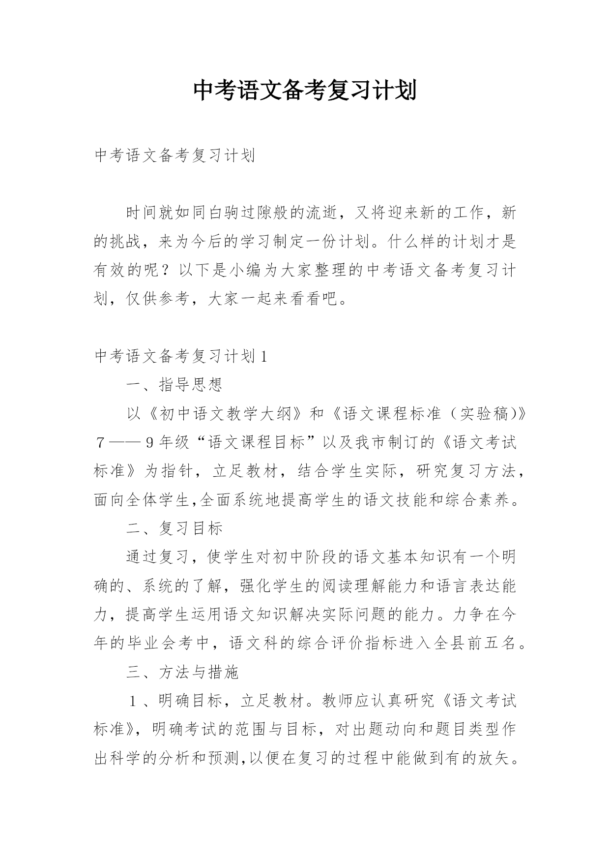 中考语文备考复习计划中考语文备考复习计划时间就如同白驹过隙般的流逝,又将迎来新的工作,新的挑战,来为今后的学习制定一份计划。什么样的计划才是有效的呢?以下是小编为大家整理的中考语文备考复习计划,仅供参考,大家一起来看看吧。中考语文备考复习计划1一、指导思想以《初中语文教学大纲》和《语文课程标准(实验稿)》7——9年级“语文课程目标”以及我市制订的《语文考试标准》为指针,立足教材,结合学生实际,研究复习方法,面向全体学生,全面系统地提高学生的语文技能和综合素养。二、复习目标通过复习,使学生对初中阶段的语文基