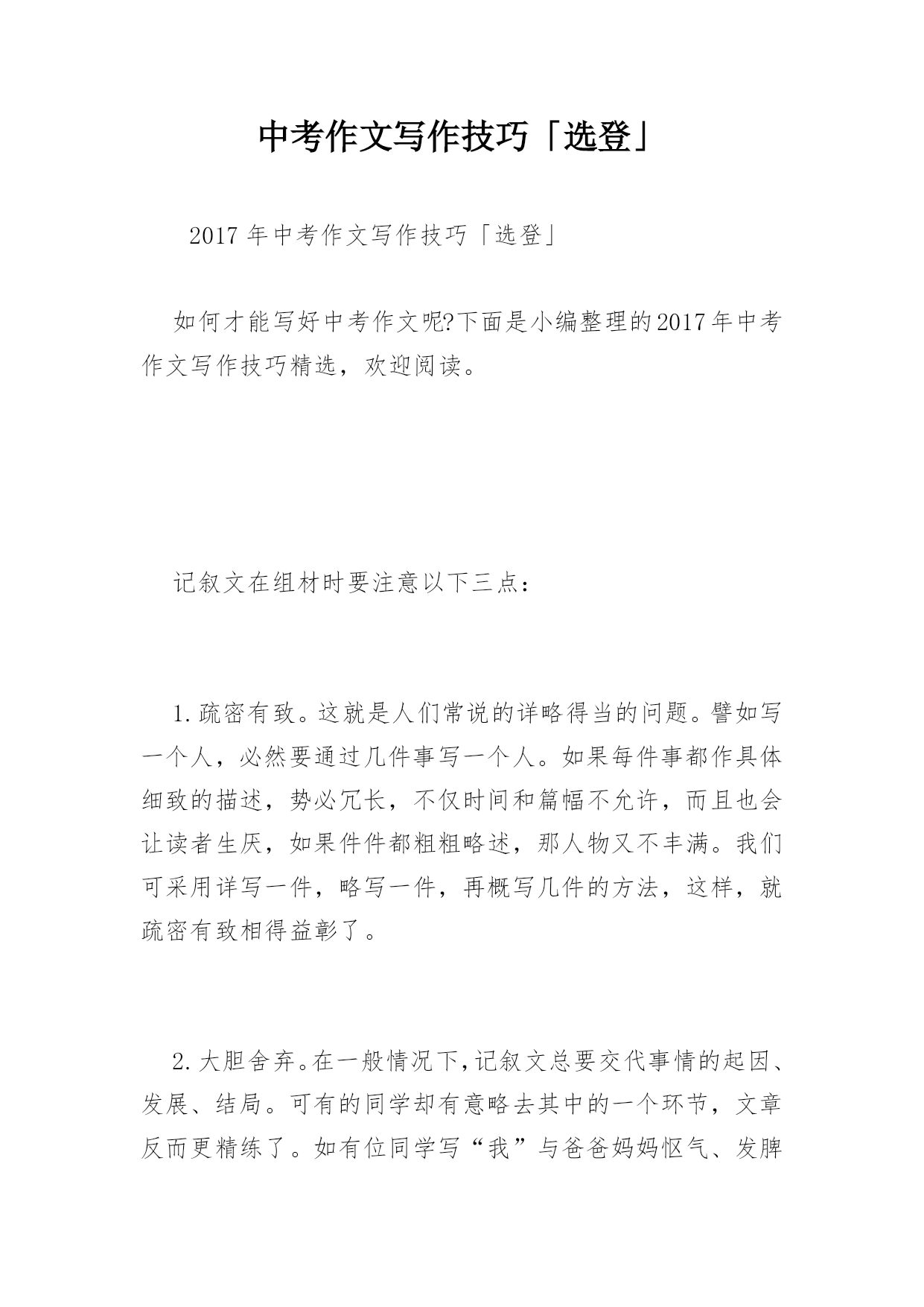 中考作文写作技巧「选登」.docx