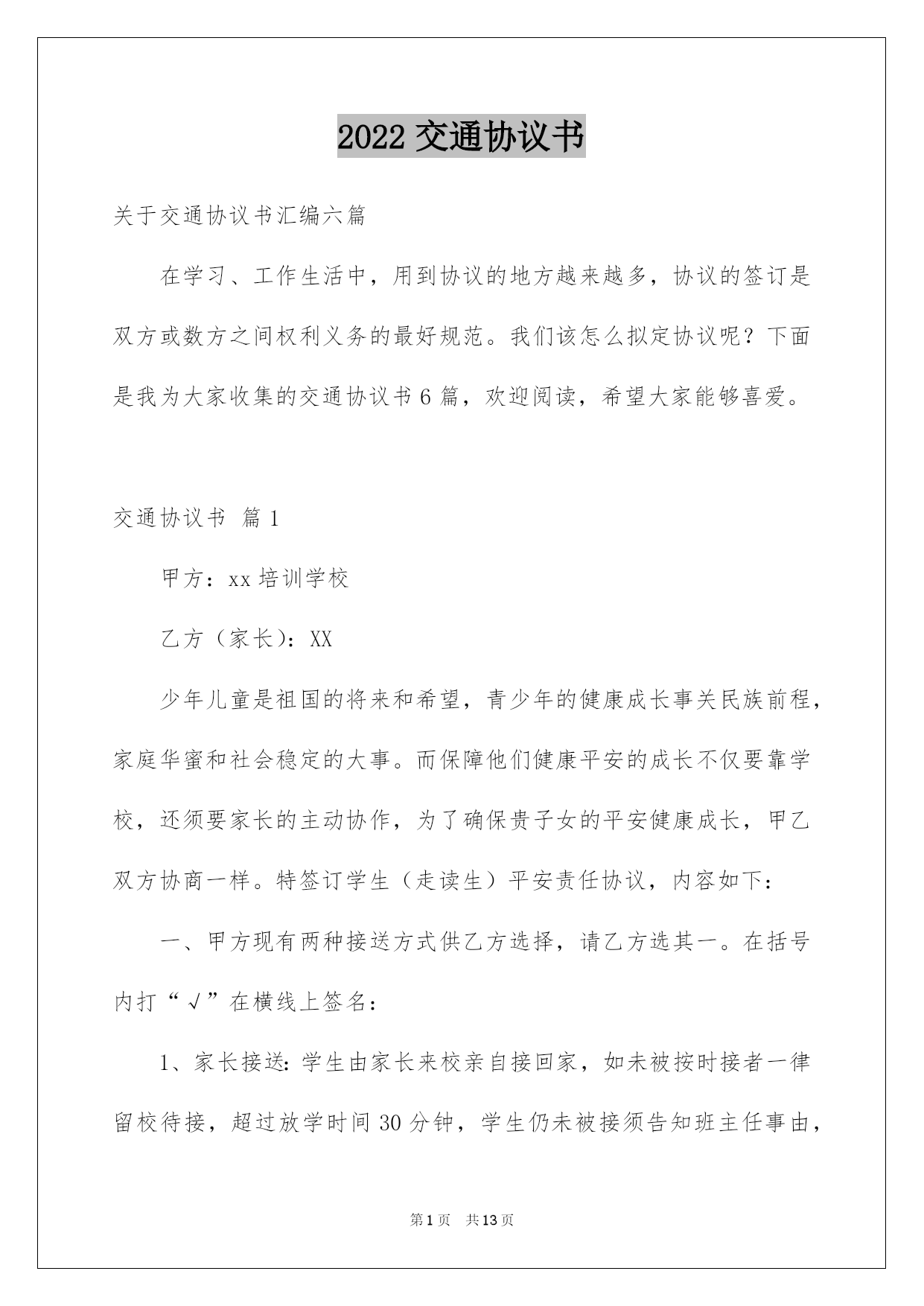 2022交通协议书【实用】.docx