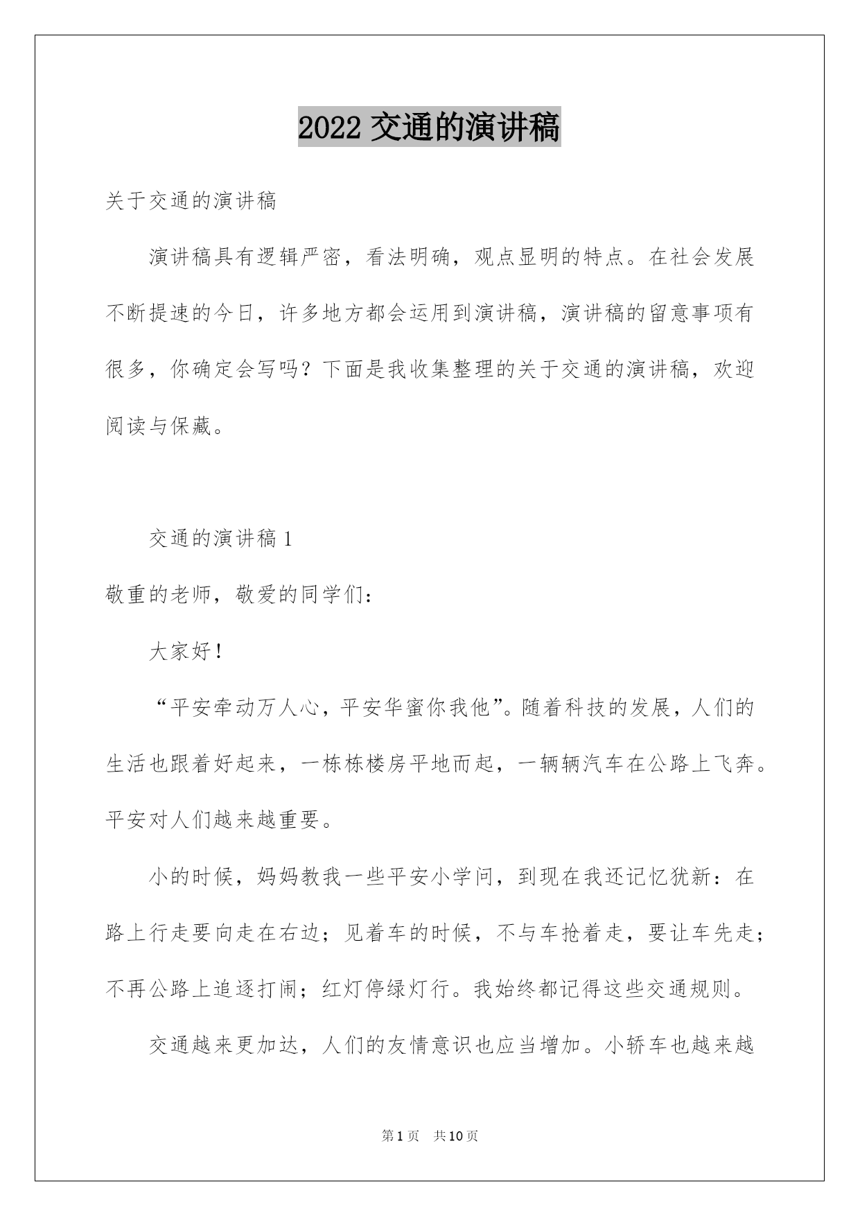 2022交通的演讲稿精选.docx