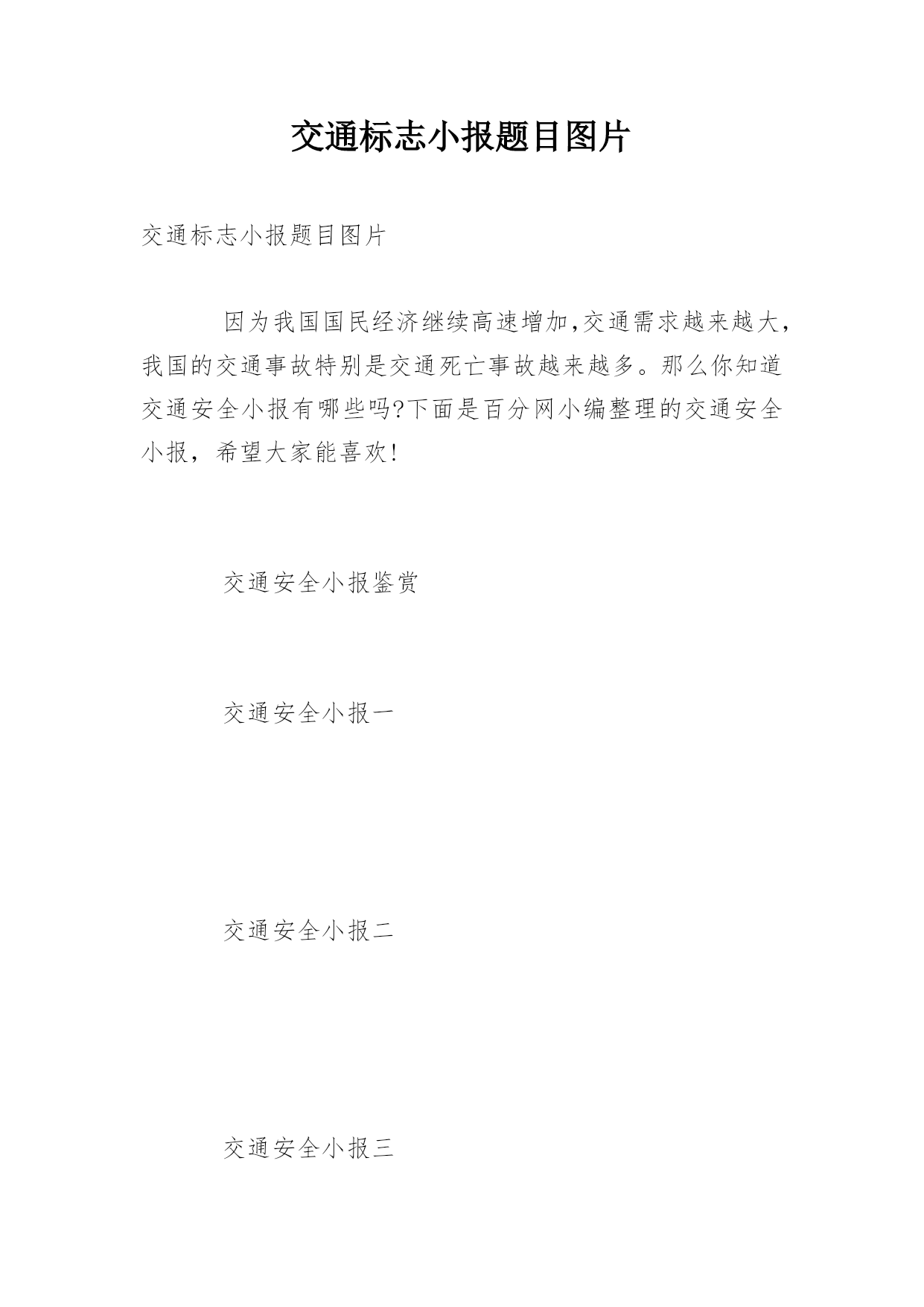 交通标志小报题目图片交通标志小报题目图片因为我国国民经济继续高速增加,交通需求越来越大,我国的交通事故特别是交通死亡事故越来越多。那么你知道交通安全小报有哪些吗?下面是百分网小编整理的交通安全小报,希望大家能喜欢!交通安全小报鉴赏交通安全小报一交通安全小报二交通安全小报三交通安全小报四交通安全小报五交通安全小报内容一:减递会车安全知识车辆在没有设置中心分隔护栏的道路行驶,与前方来车交会时,应适当降低车速,并选择比较空阔、坚实的路段,靠路右侧缓行交会通过(在视线不良的情况下会车时,要降低车速,开近灯光,即使