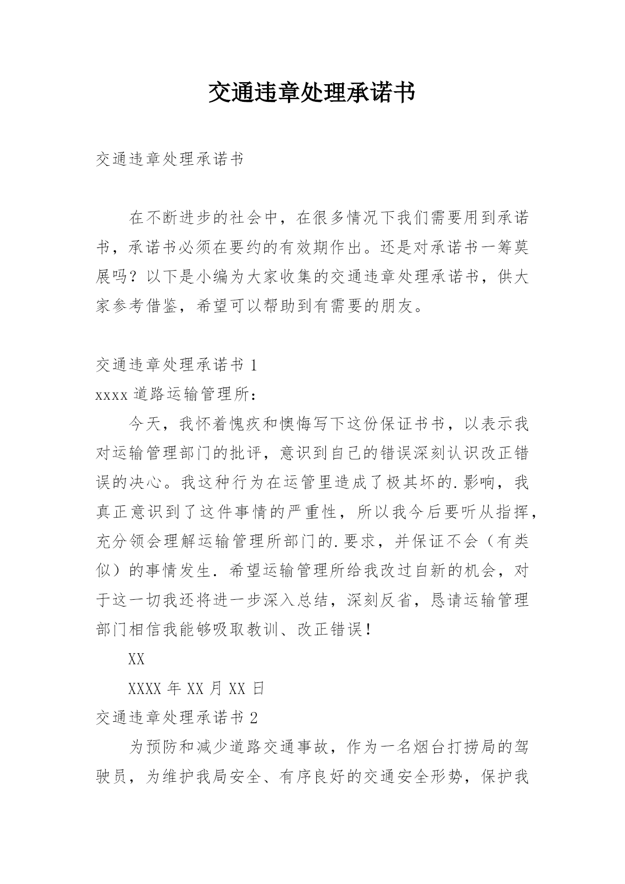 交通违章处理承诺书交通违章处理承诺书在不断进步的社会中,在很多情况下我们需要用到承诺书,承诺书必须在要约的有效期作出。还是对承诺书一筹莫展吗?以下是小编为大家收集的交通违章处理承诺书,供大家参考借鉴,希望可以帮助到有需要的朋友。交通违章处理承诺书1xxxx道路运输管理所:今天,我怀着愧疚和懊悔写下这份保证书书,以表示我对运输管理部门的批评,意识到自己的错误深刻认识改正错误的决心。我这种行为在运管里造成了极其坏的.影响,我真正意识到了这件事情的严重性,所以我今后要听从指挥,充分领会理解运输管理所部门的.要求