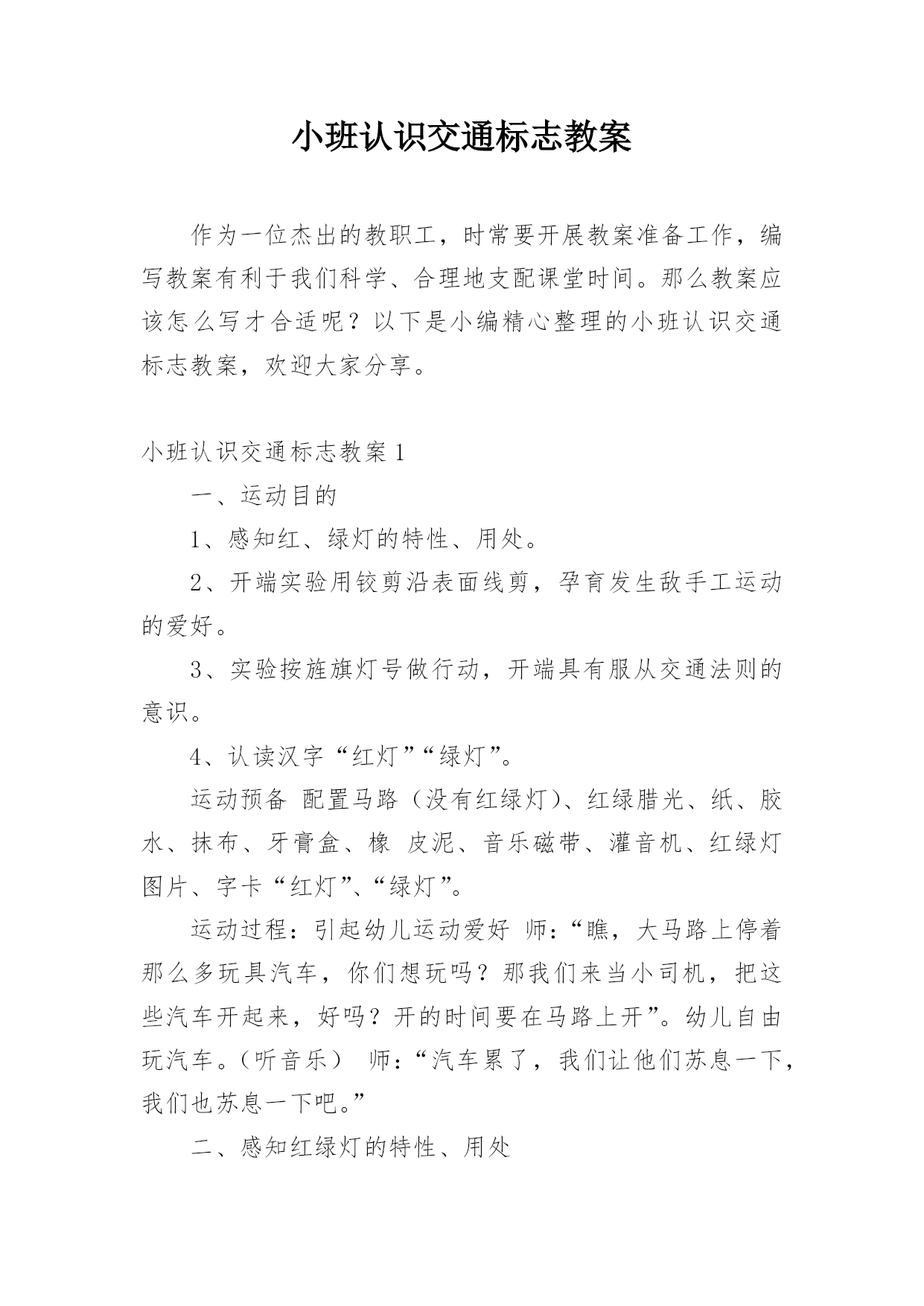 小班认识交通标志教案作为一位杰出的教职工,时常要开展教案准备工作,编写教案有利于我们科学、合理地支配课堂时间。那么教案应该怎么写才合适呢?以下是小编精心整理的小班认识交通标志教案,欢迎大家分享。小班认识交通标志教案1一、运动目的1、感知红、绿灯的特性、用处。2、开端实验用铰剪沿表面线剪,孕育发生敌手工运动的爱好。3、实验按旌旗灯号做行动,开端具有服从交通法则的意识。4、认读汉字“红灯”“绿灯”。运动预备配置马路(没有红绿灯)、红绿腊光、纸、胶水、抹布、牙膏盒、橡皮泥、音乐磁带、灌音机、红绿灯图片、字卡“红