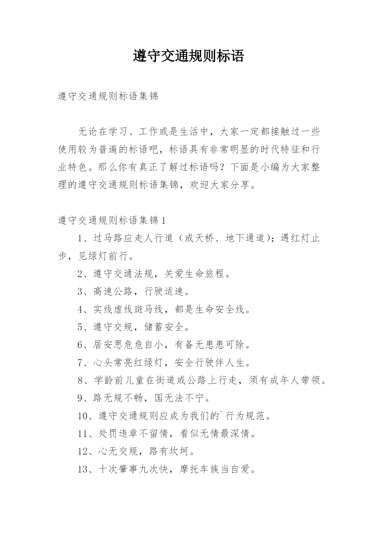 遵守交通规则标语遵守交通规则标语集锦无论在学习、工作或是生活中,大家一定都接触过一些使用较为普遍的标语吧,标语具有非常明显的时代特征和行业特色。那么你有真正了解过标语吗?下面是小编为大家整理的遵守交通规则标语集锦,欢迎大家分享。遵守交通规则标语集锦11、过马路应走人行道(或天桥、地下通道);遇红灯止步,见绿灯前行。2、遵守交通法规,关爱生命旅程。3、高速公路,行驶适速。4、实线虚线斑马线,都是生命安全线。5、遵守交规,储蓄安全。6、居安思危危自小,有备无患患可除。7、心头常亮红绿灯,安全行驶伴人生。8、学