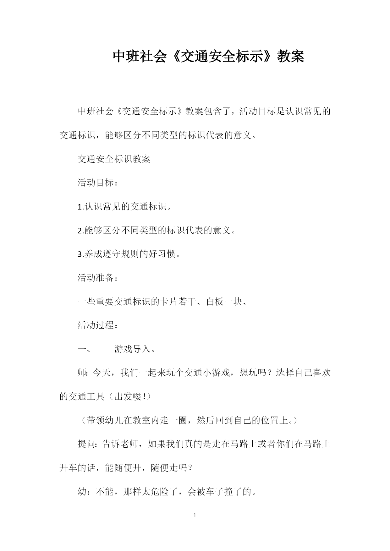 PAGEPAGE3中班社会《交通安全标示》教案中班社会《交通安全标示》教案包含了,活动目标是认识常见的交通标识,能够区分不同类型的标识代表的意义。交通安全标识教案活动目标:1.认识常见的交通标识。2.能够区分不同类型的标识代表的意义。3.养成遵守规则的好习惯。活动准备:一些重要交通标识的卡片若干、白板一块、活动过程:一、游戏导入。师:今天,我们一起来玩个交通小游戏,想玩吗?选择自己喜欢的交通工具(出发喽!)(带领幼儿在教室内走一圈,然后回到自己的位置上。)提问:告诉老师,如果我们真的是走在马路