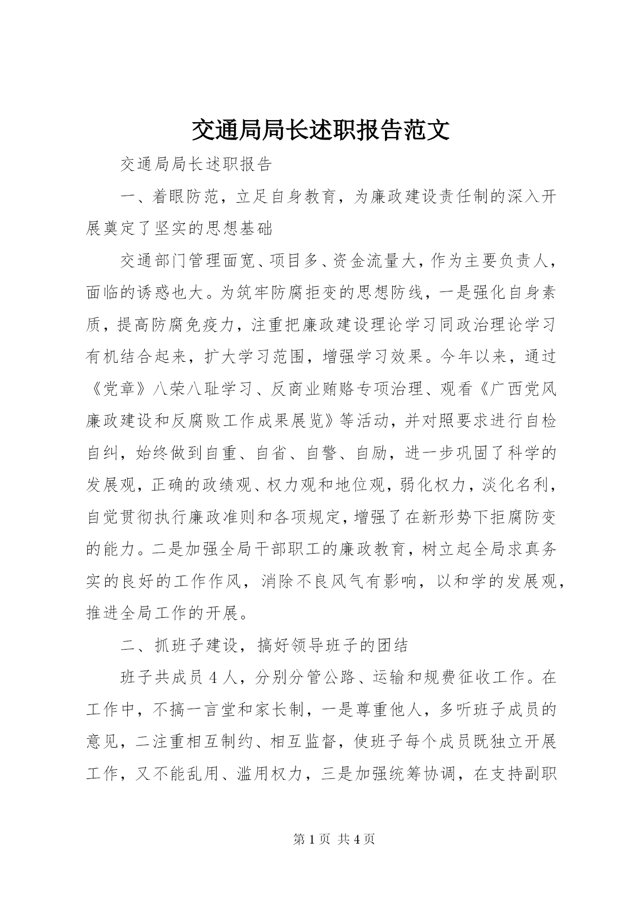 第PAGE\*Arabic\*MERGEFORMAT4页共NUMPAGES\*MERGEFORMAT4页交通局局长述职报告范文交通局局长述职报告一、着眼防范,立足自身教育,为廉政建设责任制的深入开展奠定了坚实的思想基础交通部门管理面宽、项目多、资金流量大,作为主要负责人,面临的诱惑也大。为筑牢防腐拒变的思想防线,一是强化自身素质,提高防腐免疫力,注重把廉政建设理论学习同政治理论学习有机结合起来,扩大学习范围,增强学习效果。今年以来,通过《党章》八荣八耻学习、反商业贿赂专项治理、观看《广西党风廉