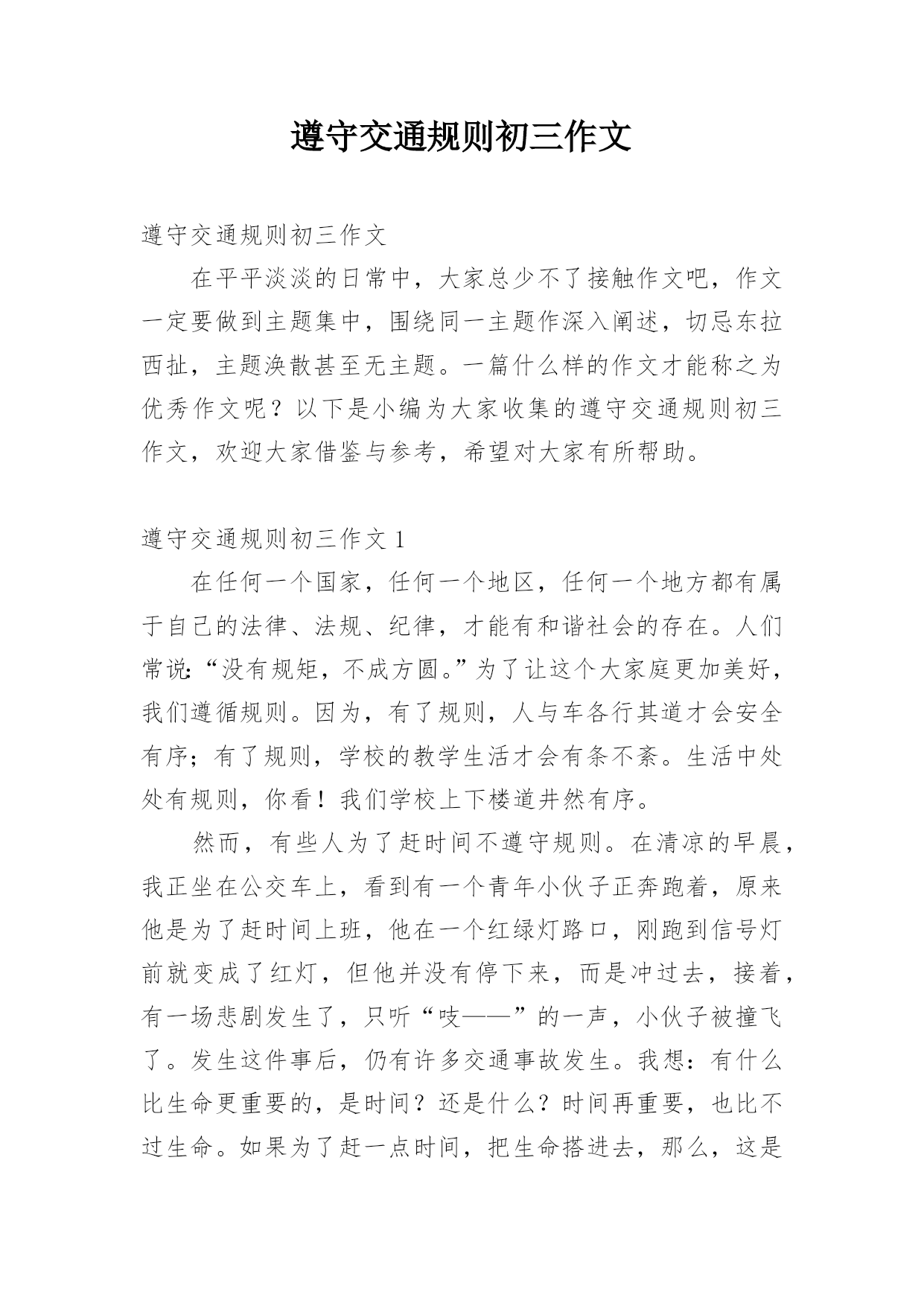 遵守交通规则初三作文遵守交通规则初三作文在平平淡淡的日常中,大家总少不了接触作文吧,作文一定要做到主题集中,围绕同一主题作深入阐述,切忌东拉西扯,主题涣散甚至无主题。一篇什么样的作文才能称之为优秀作文呢?以下是小编为大家收集的遵守交通规则初三作文,欢迎大家借鉴与参考,希望对大家有所帮助。遵守交通规则初三作文1在任何一个国家,任何一个地区,任何一个地方都有属于自己的法律、法规、纪律,才能有和谐社会的存在。人们常说:“没有规矩,不成方圆。”为了让这个大家庭更加美好,我们遵循规则。因为,有了规则,人与车各行其道