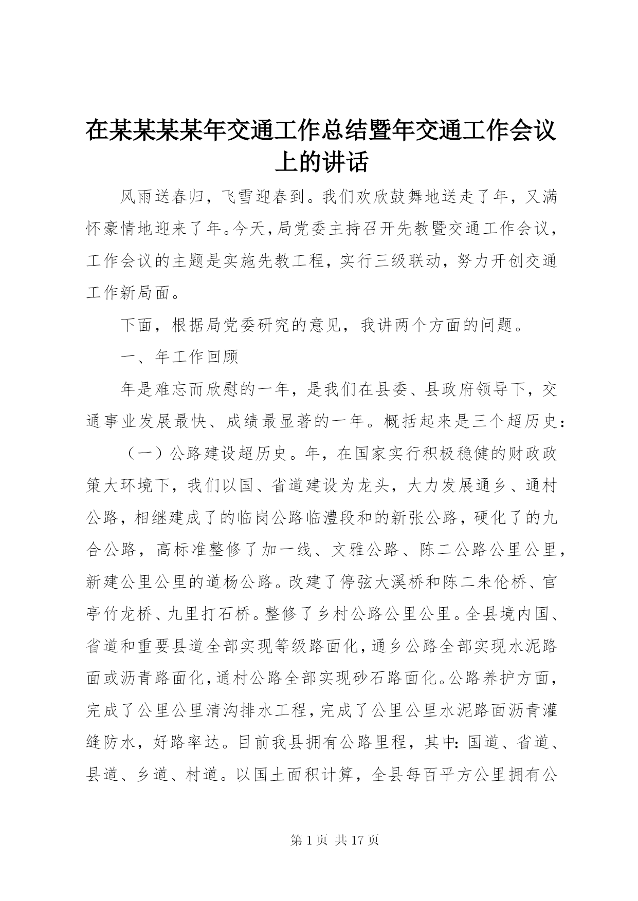 在某某某某年交通工作总结暨年交通工作会议上的致辞.docx