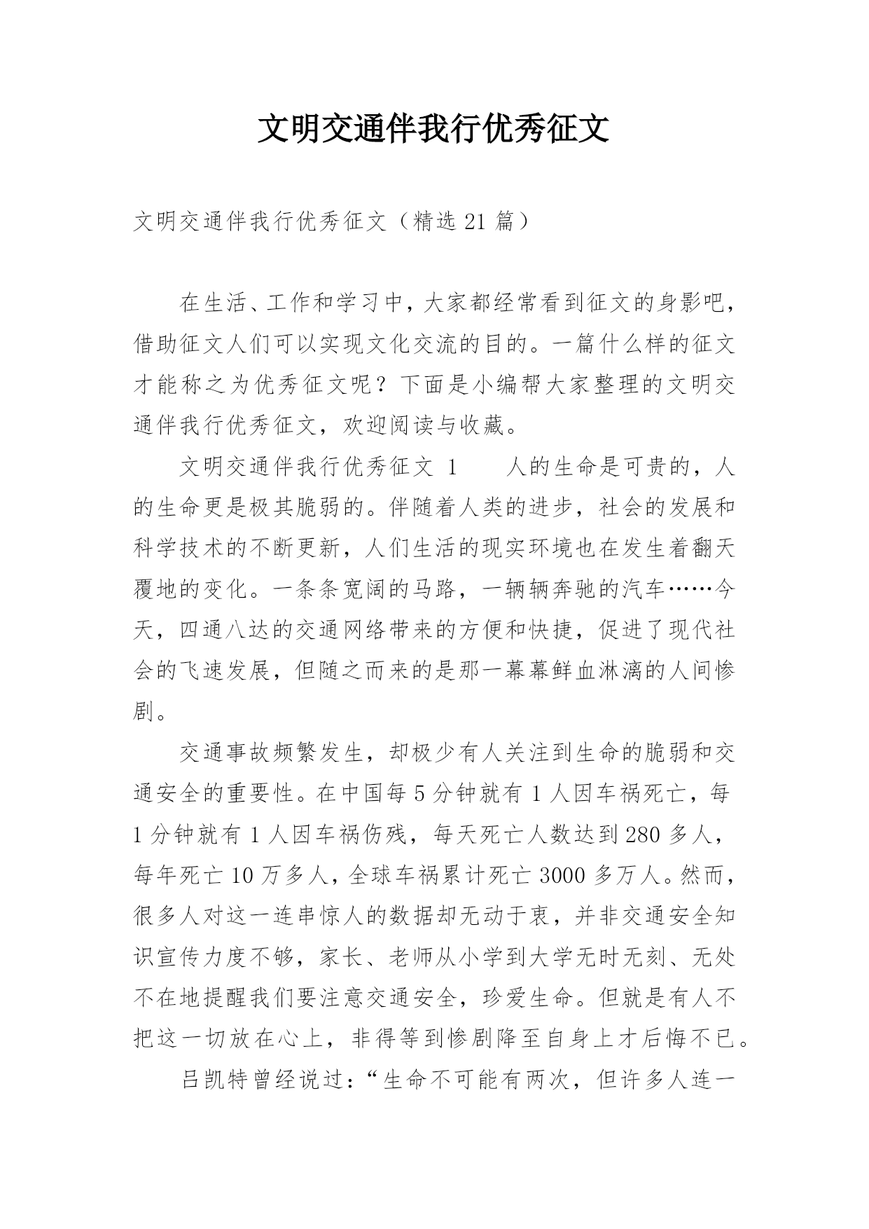 文明交通伴我行优秀征文文明交通伴我行优秀征文(精选21篇)在生活、工作和学习中,大家都经常看到征文的身影吧,借助征文人们可以实现文化交流的目的。一篇什么样的征文才能称之为优秀征文呢?下面是小编帮大家整理的文明交通伴我行优秀征文,欢迎阅读与收藏。文明交通伴我行优秀征文1人的生命是可贵的,人的生命更是极其脆弱的。伴随着人类的进步,社会的发展和科学技术的不断更新,人们生活的现实环境也在发生着翻天覆地的变化。一条条宽阔的马路,一辆辆奔驰的汽车……今天,四通八达的交通网络带来的方便和快捷,促进了现代社会的飞速发展,