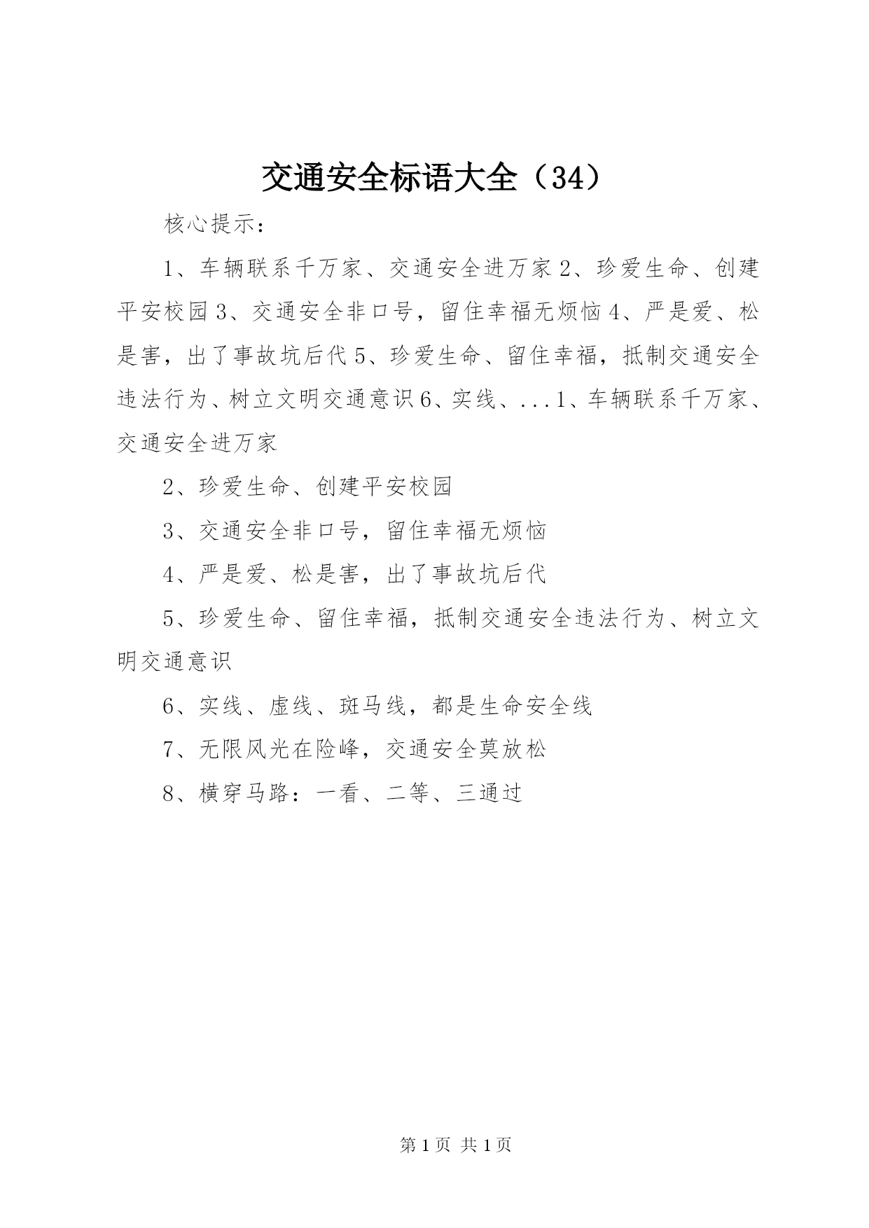 第PAGE\*Arabic\*MERGEFORMAT1页共NUMPAGES\*MERGEFORMAT1页交通安全标语大全(34)核心提示:1、车辆联系千万家、交通安全进万家2、珍爱生命、创建平安校园3、交通安全非口号,留住幸福无烦恼4、严是爱、松是害,出了事故坑后代5、珍爱生命、留住幸福,抵制交通安全违法行为、树立文明交通意识6、实线、...1、车辆联系千万家、交通安全进万家2、珍爱生命、创建平安校园3、交通安全非口号,留住幸福无烦恼4、严是爱、松是害,出了事故坑后代5、珍爱生命、留住幸福,抵