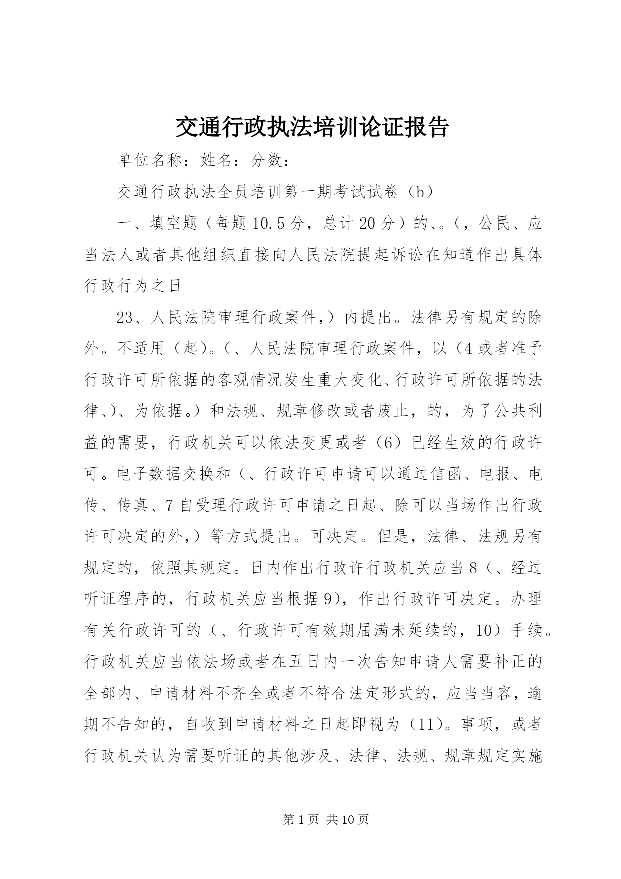 第PAGE\*Arabic\*MERGEFORMAT10页共NUMPAGES\*MERGEFORMAT10页交通行政执法培训论证报告单位名称:姓名:分数:交通行政执法全员培训第一期考试试卷(b)一、填空题(每题10.5分,总计20分)的、。(,公民、应当法人或者其他组织直接向人民法院提起诉讼在知道作出具体行政行为之日23、人民法院审理行政案件,)内提出。法律另有规定的除外。不适用(起)。(、人民法院审理行政案件,以(4或者准予行政许可所依据的客观情况发生重大变化、行政许可所依据的法律、)、为依