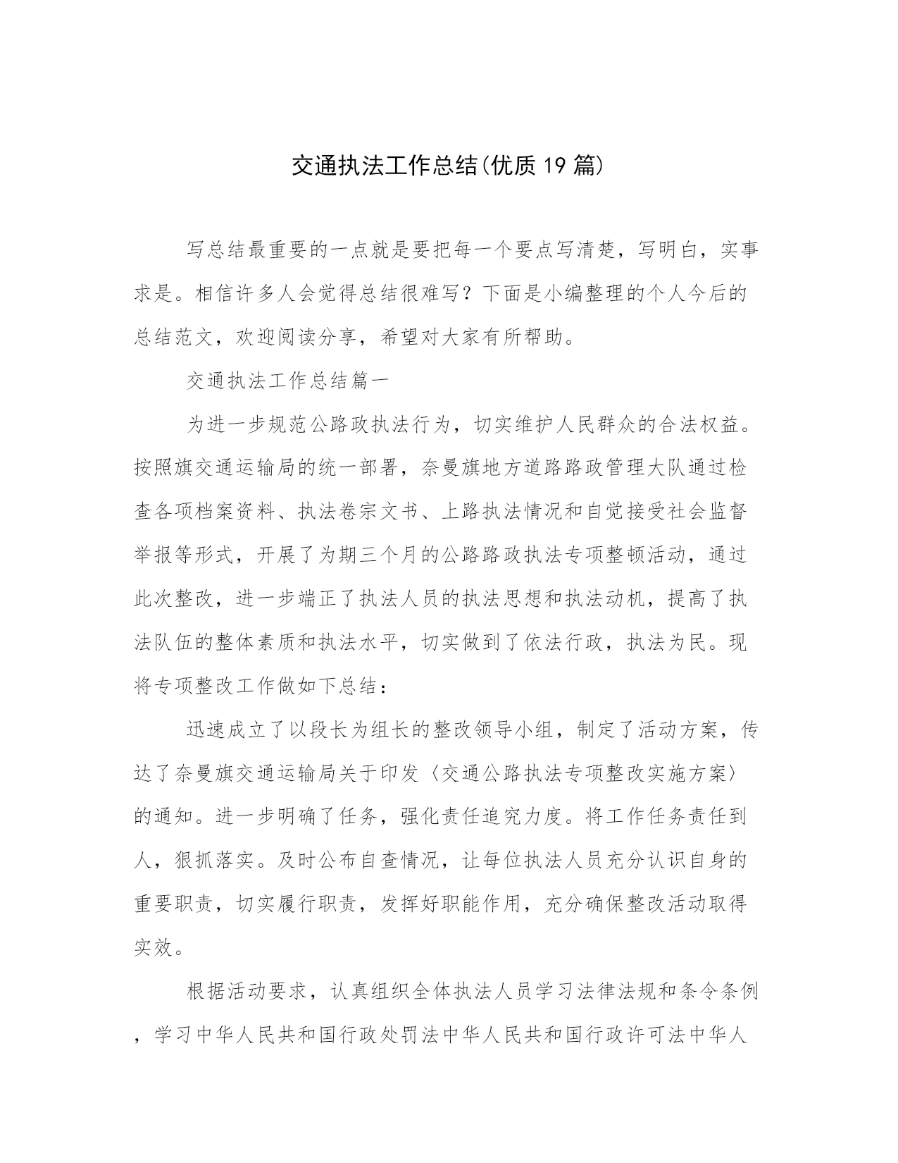 交通执法工作总结(优质19篇).docx