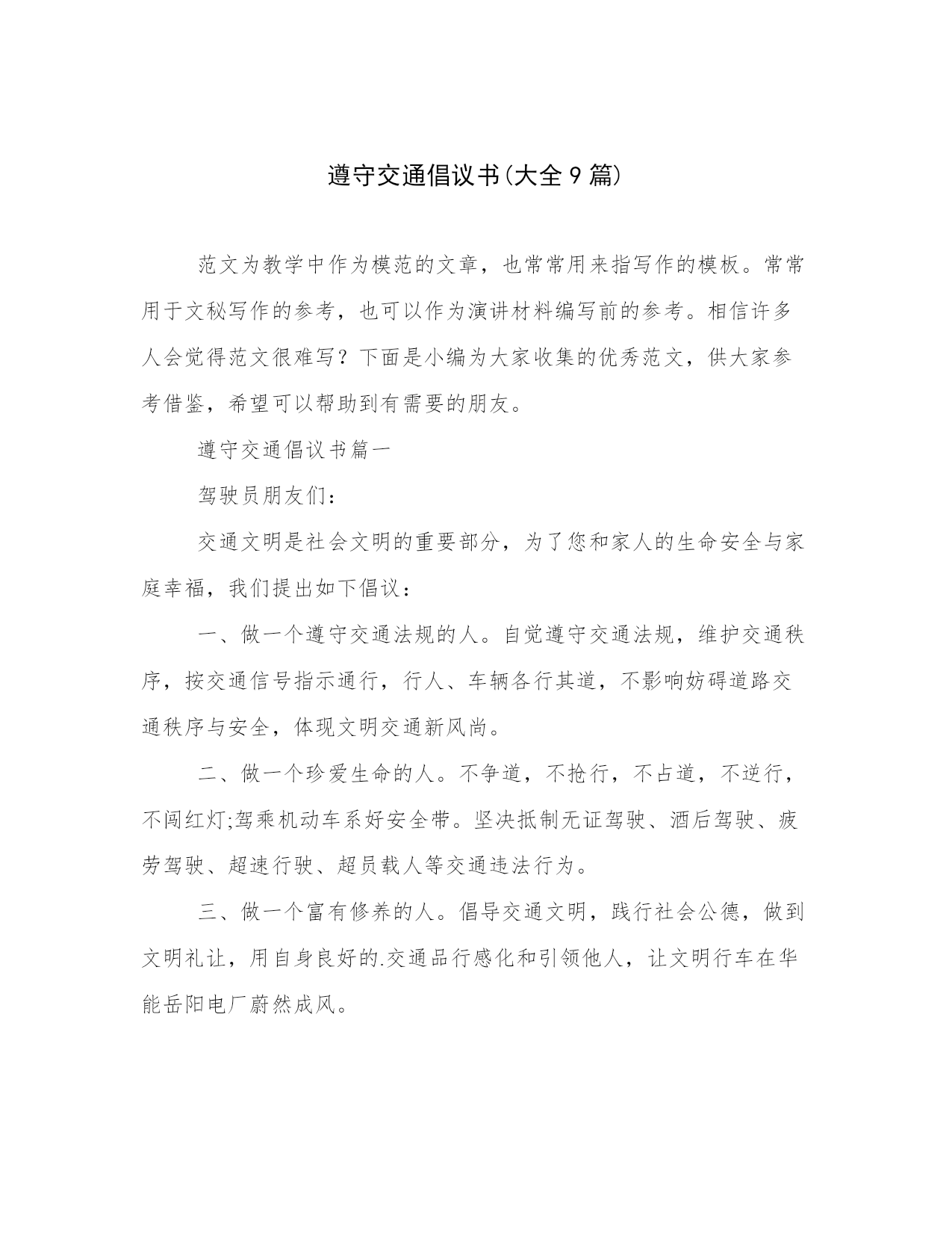 遵守交通倡议书(大全9篇).docx