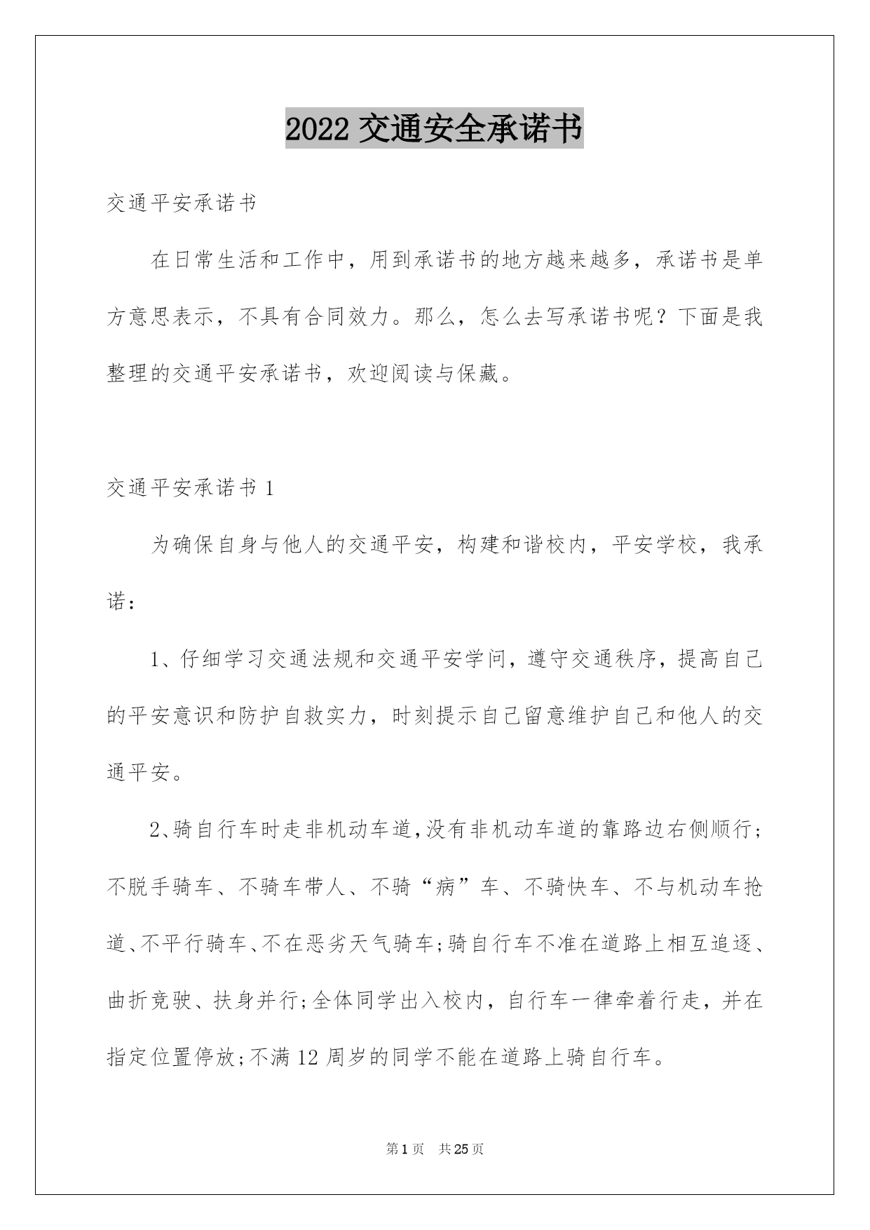 2022交通安全承诺书【精选】.docx