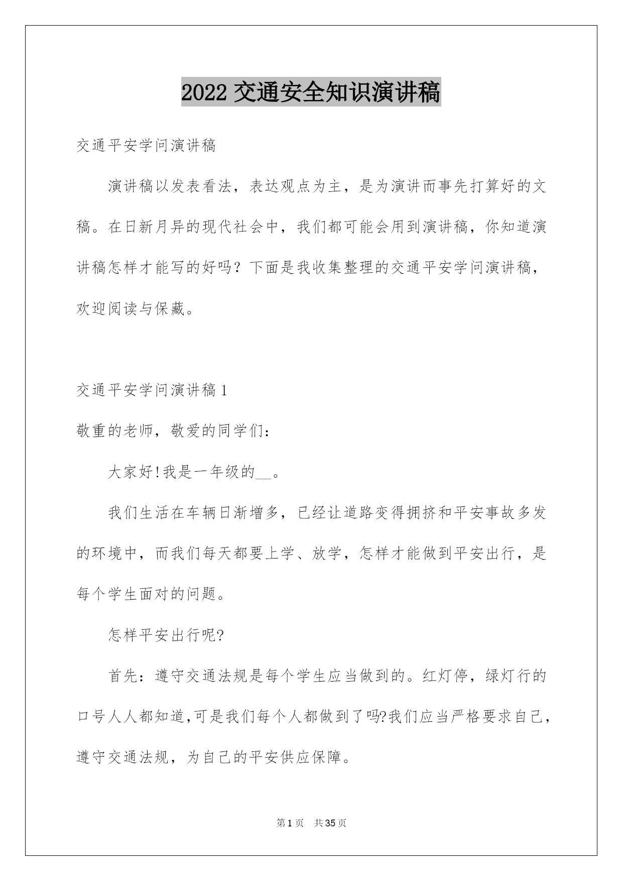 2022交通安全学生演讲稿.docx