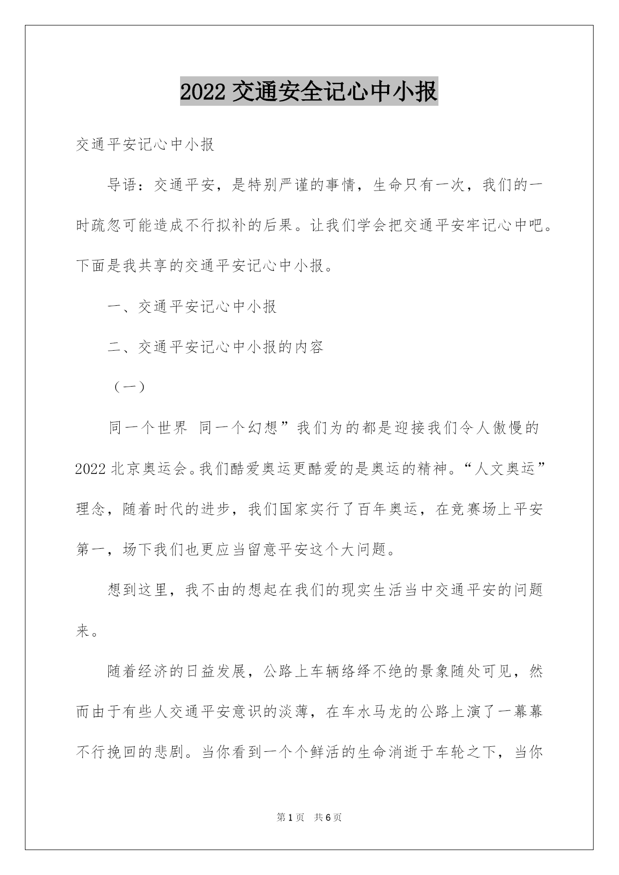 2022交通安全记心中小报.docx
