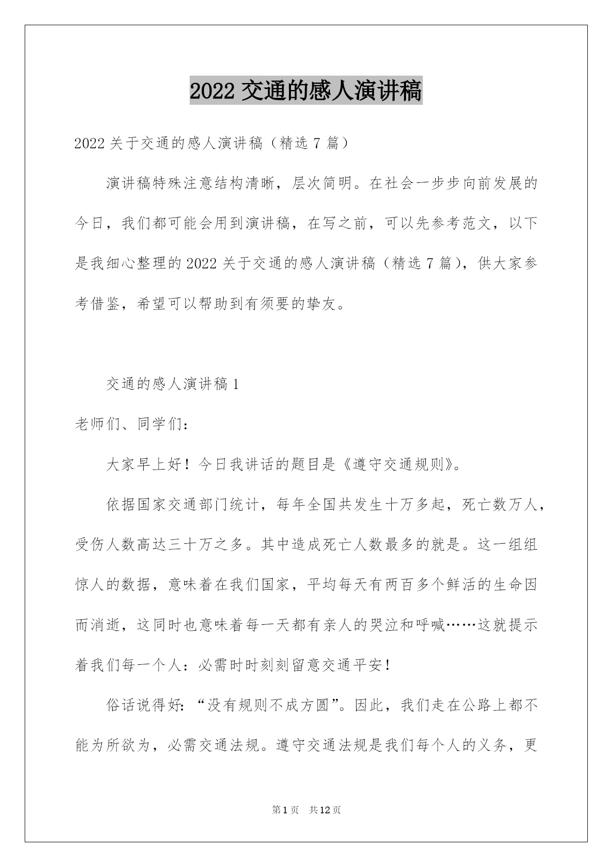 2022交通的感人演讲稿精编.docx