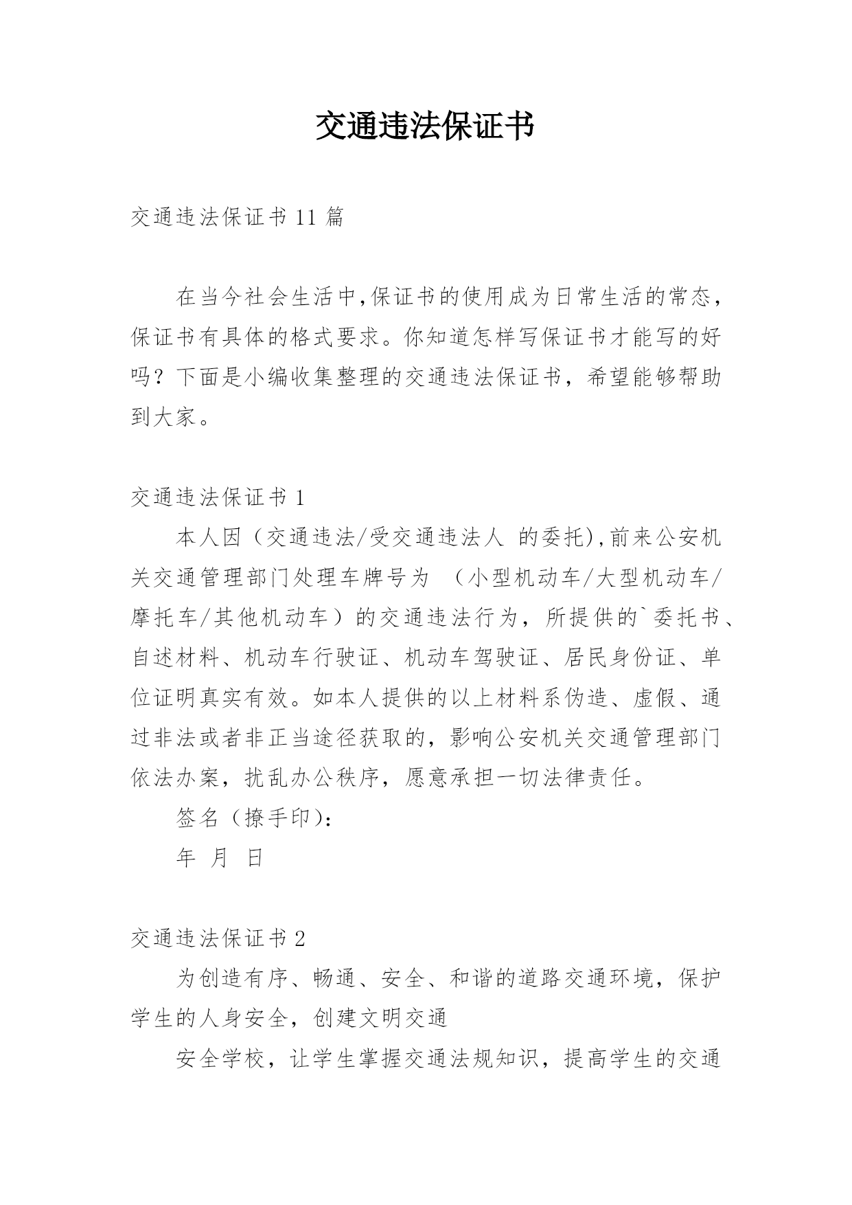 交通违法保证书交通违法保证书11篇在当今社会生活中,保证书的使用成为日常生活的常态,保证书有具体的格式要求。你知道怎样写保证书才能写的好吗?下面是小编收集整理的交通违法保证书,希望能够帮助到大家。交通违法保证书1本人因(交通违法/受交通违法人的委托),前来公安机关交通管理部门处理车牌号为(小型机动车/大型机动车/摩托车/其他机动车)的交通违法行为,所提供的`委托书、自述材料、机动车行驶证、机动车驾驶证、居民身份证、单位证明真实有效。如本人提供的以上材料系伪造、虚假、通过非法或者非正当途径获取的,影响公安机