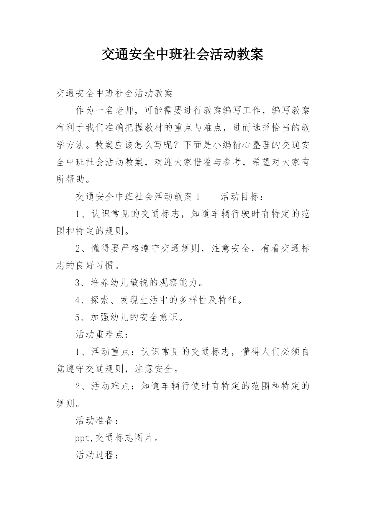 交通安全中班社会活动教案.docx