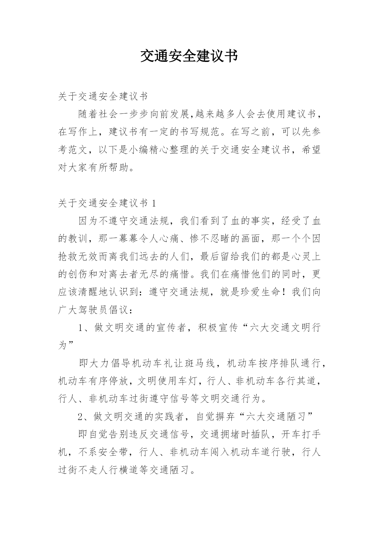 交通安全建议书精编.docx