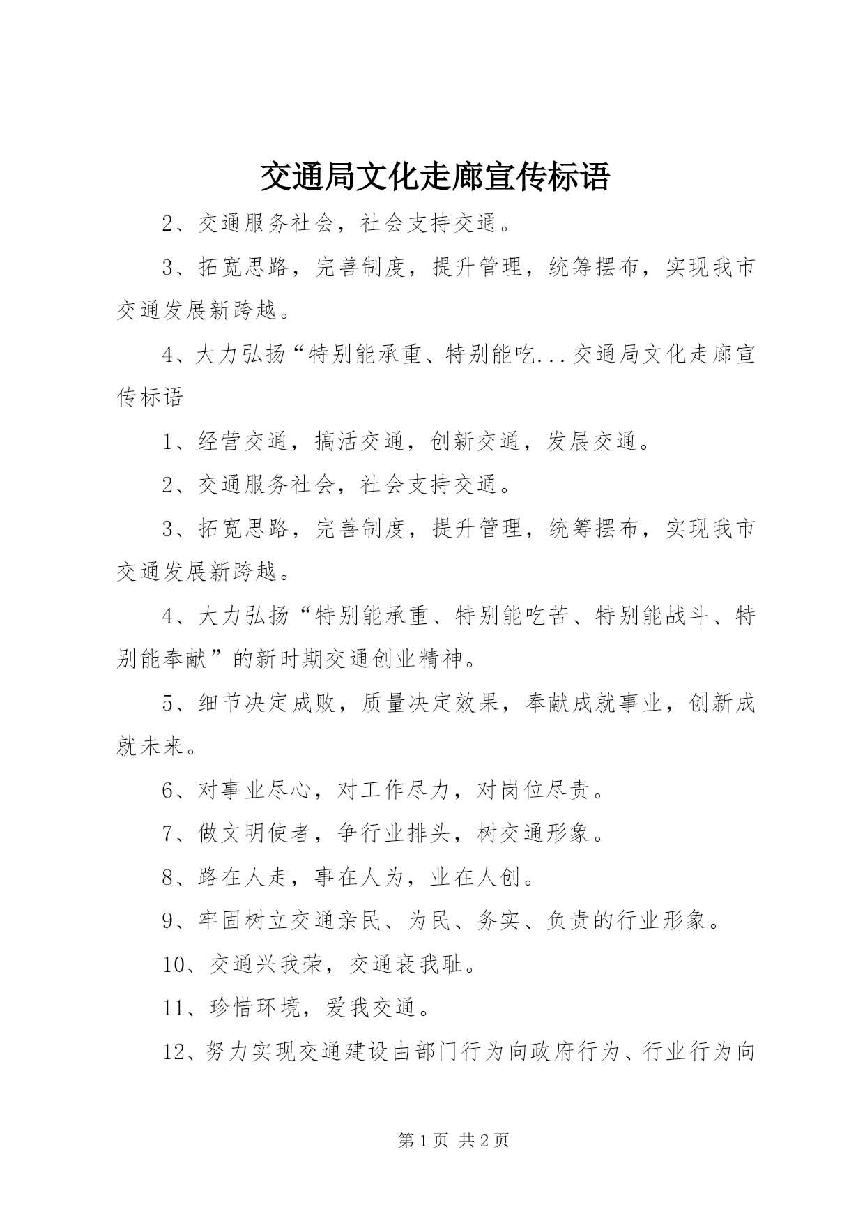 第PAGE\*Arabic\*MERGEFORMAT2页共NUMPAGES\*MERGEFORMAT2页交通局文化走廊宣传标语2、交通服务社会,社会支持交通。3、拓宽思路,完善制度,提升管理,统筹摆布,实现我市交通发展新跨越。4、大力弘扬“特别能承重、特别能吃...交通局文化走廊宣传标语1、经营交通,搞活交通,创新交通,发展交通。2、交通服务社会,社会支持交通。3、拓宽思路,完善制度,提升管理,统筹摆布,实现我市交通发展新跨越。4、大力弘扬“特别能承重、特别能吃苦、特别能战斗、特别能奉献”的新