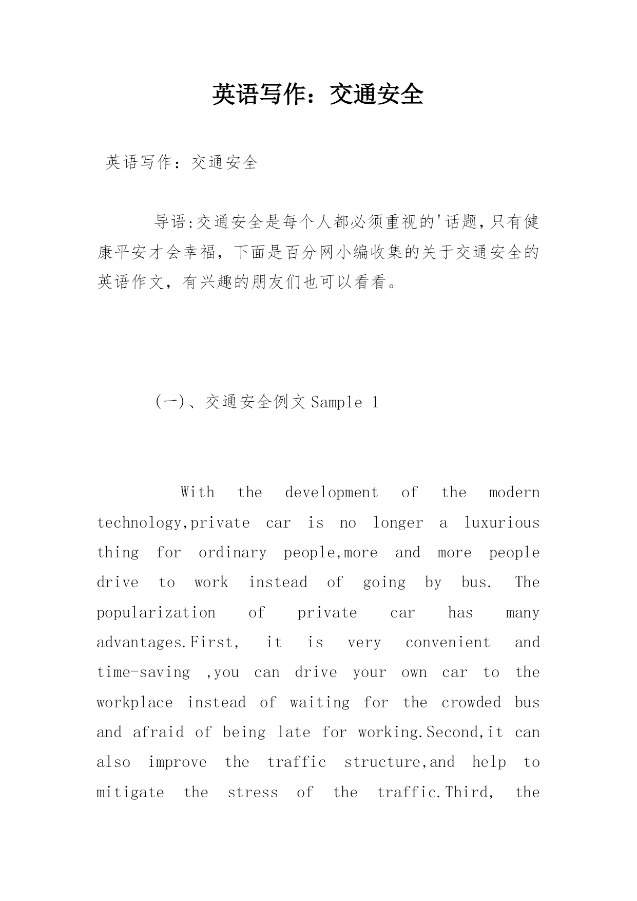 英语写作:交通安全.docx